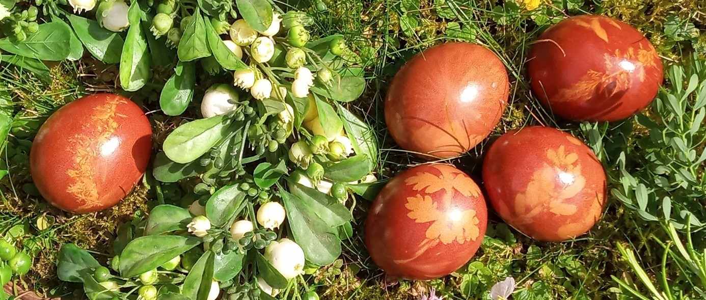 Wir lassen eine alte Ostertradition aufleben und färben die Eier mit einem Sud aus Zwiebelschalen, einer Strumpfhose und diversen Pflanzen. Egal welche und wie viele Farben es werden, der Herstellungsprozess ist denkbar simpel. Mit frischen Kräutern wie Petersilie, Löwenzahn, Schafgarbe oder Gänseblümchen lassen sich ganz einfache Muster herstellen. Es wird richtig kreativ und bei den Farben und der Gestaltung wird experimentiert.