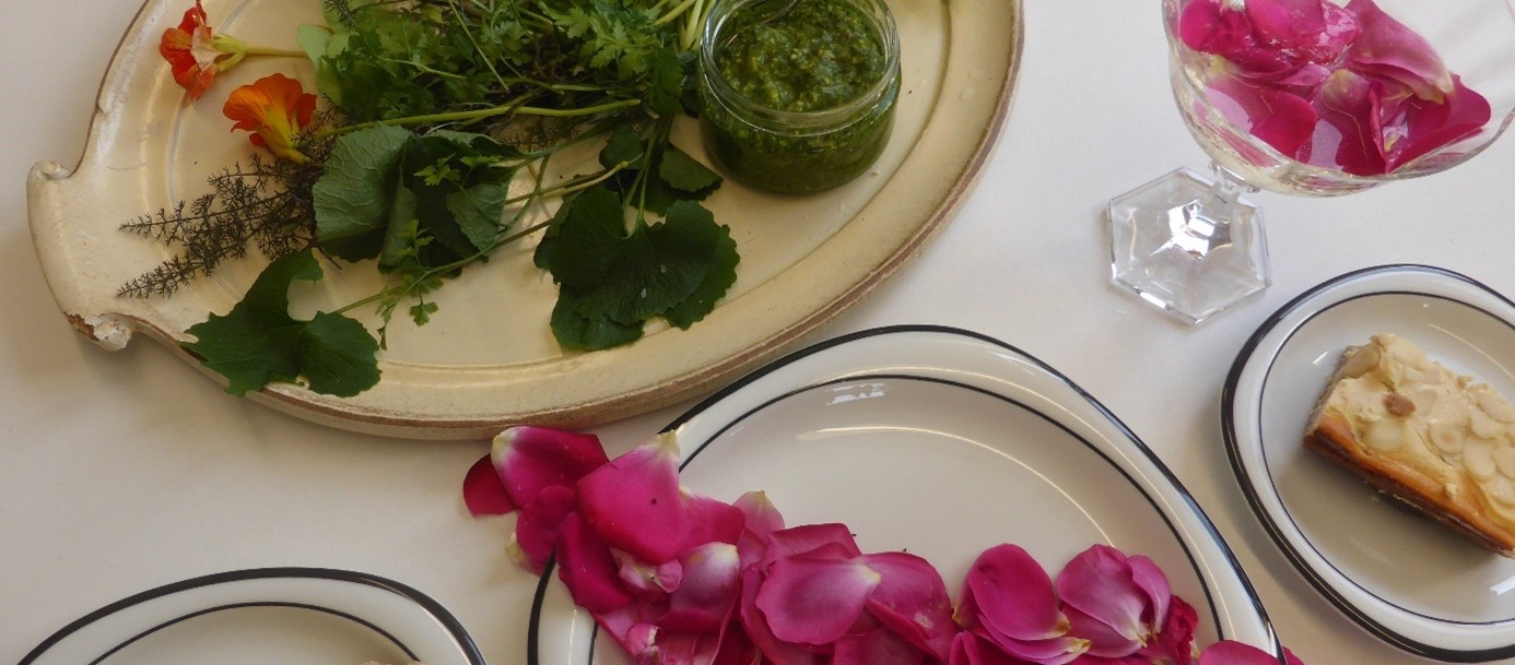 Wunderbar, welche Köstlichkeiten unser Garten bereits hergibt: Rosenblüten, Lindenblüten, Kräuter, Gemüse, Salate, Spargel, Erdbeeren, Rhabarber…