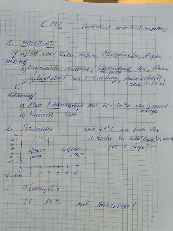 Der Aerobe Prozess benötigt Sauerstoff und die Mikroorganismen dürfen nicht heißer als 65° C bekommen. Ebenso ist beim Wenden bei Bedarf der Komposthaufen zu netzen. Mikroorganismen benötigen Feuchtigkeit (55%).