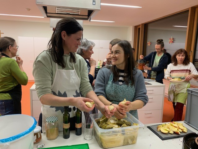 Wir starteten dieses Jahr mit einem Fermentierkurs ins neue Jahr. Sanjay Bösch führte uns eindrücklich in die Kunst der Fermentation ein und beim gemeinsamen Gemüse schneiden beantwortete er viele Fragen. Am Schluss durften noch einige Kostproben aus Sanjays Küche probiert werden, die teilweise auch etwas gewöhnungsbedürftig für unsere europäischen Gaumen waren. Danke für das große Interesse am Kurs, es wird sicher noch eine Wiederholung geben.