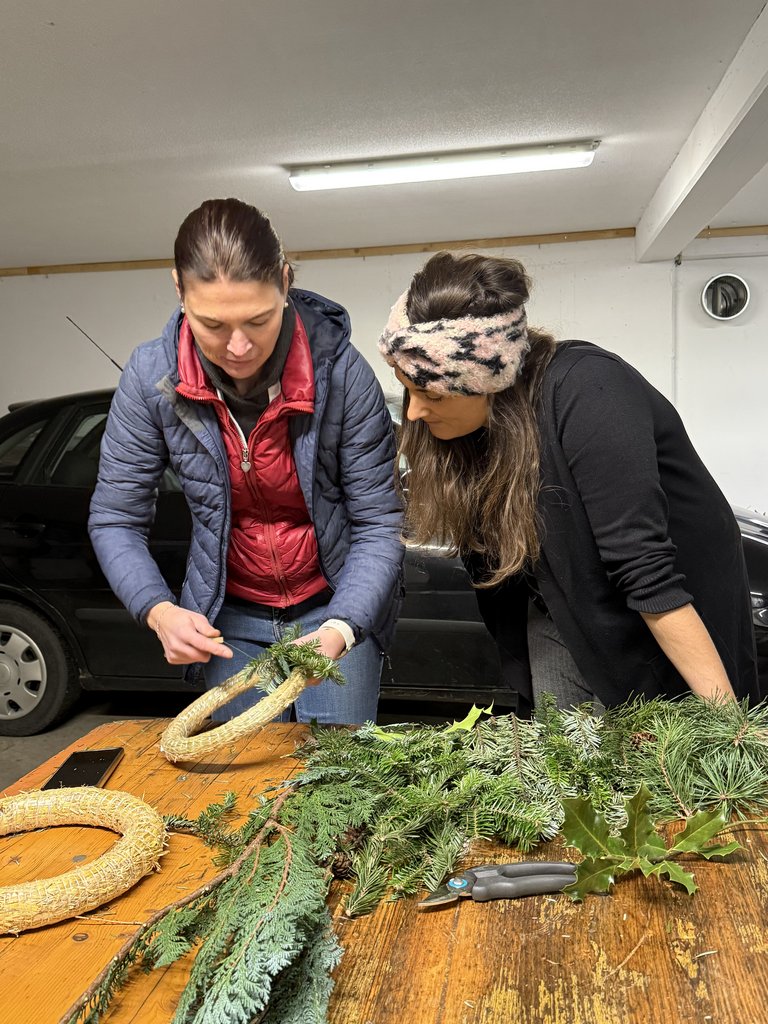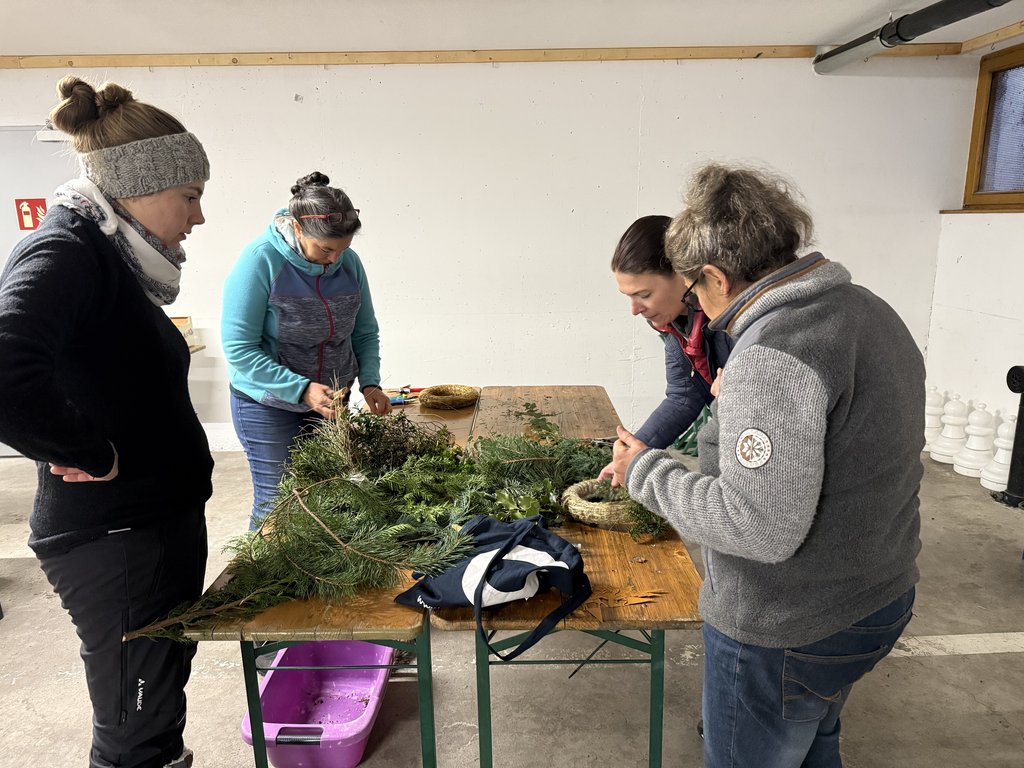 Mit viel Fachwissen, kreativen Ideen und einem feinen Gespür für natürliche Materialien begleitete Daniela Mayer die Teilnehmenden beim Gestalten ihrer individuellen Werkstücke. Tannenzweige, Efeu und Buchs wurden vom Verein zur Verfügung gestellt und bildeten die grüne Grundlage für liebevoll gebundene Adventkränze und festliche Dekorationen.