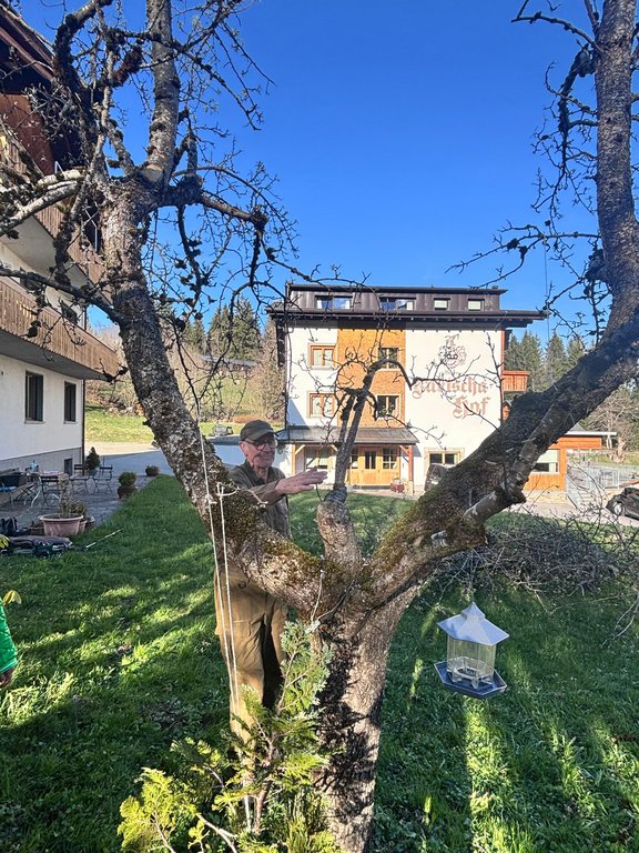 Bei strahlendem Frühlingswetter fand am 17. April 2026 auf der Tschengla der Baumschnittkurs für Kernobst des Obst- und Gartenbauvereins Brandnertal statt. Unter der fachkundigen Leitung unserer neu ausgebildeten Baumwärter Oskar Meyer und Rainer Schallert wurde nicht nur geschnitten, sondern auch intensiv gelernt und ausprobiert.