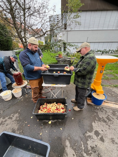 Bei wunderbarem Herbstwetter traffen sich viele Mitglieder zum gemeinsamen Mostpressen.