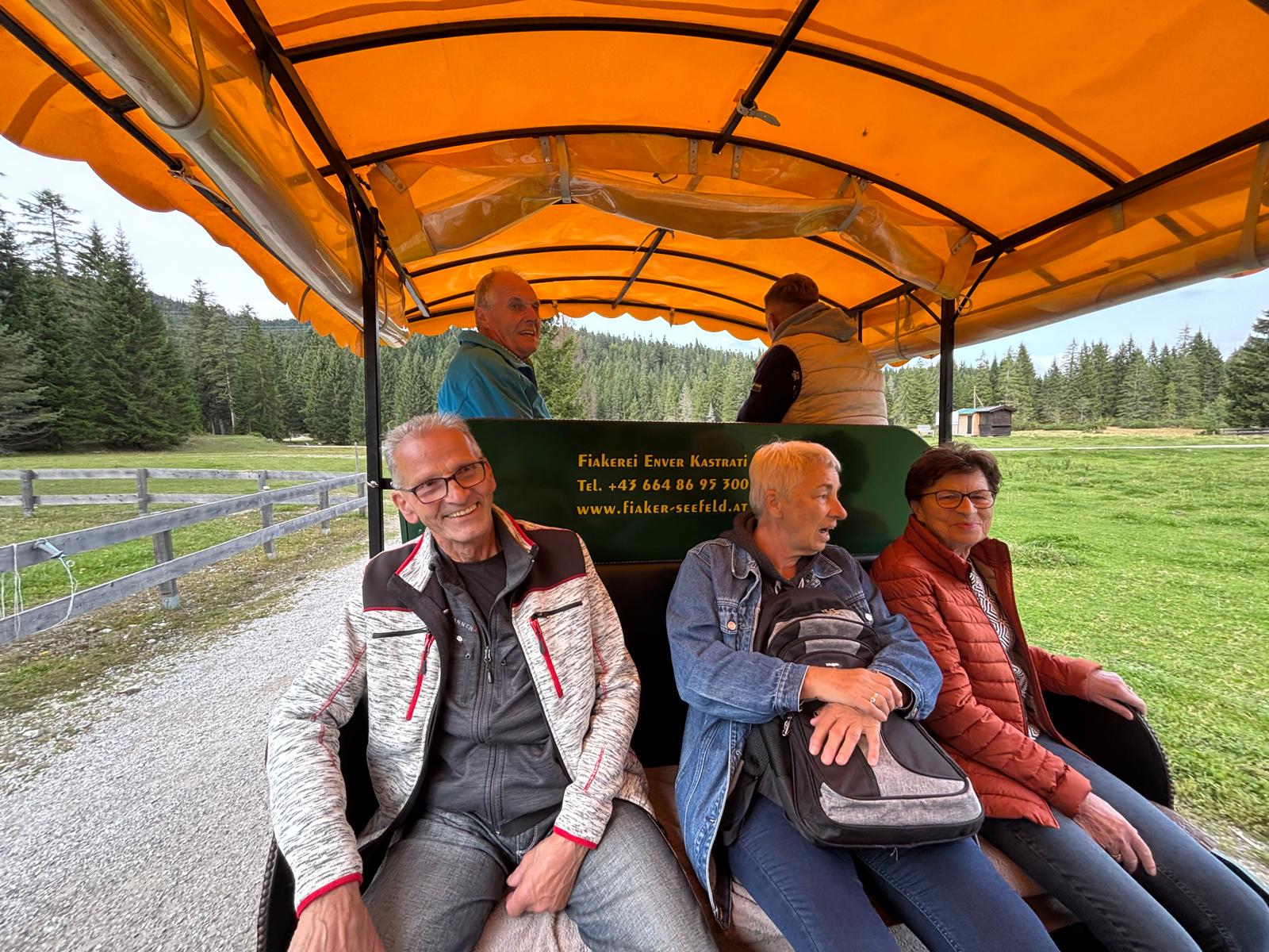 Wir fuhren mit dem Bus nach Seefeld. Ein Zubringerbus brachte uns zur Wildmoosalm zum Mittagessen. Am Nachmittag fuhren wir mit der Kutsche wieder nach Seefeld wo uns der Bus über das Mieminger Plateu, Imst, Landeck nach Flirsch brachte. Im Hotel Toschana wurde noch ein Einkehrschwung gemacht bevor die Heimreise angetreten wurde.