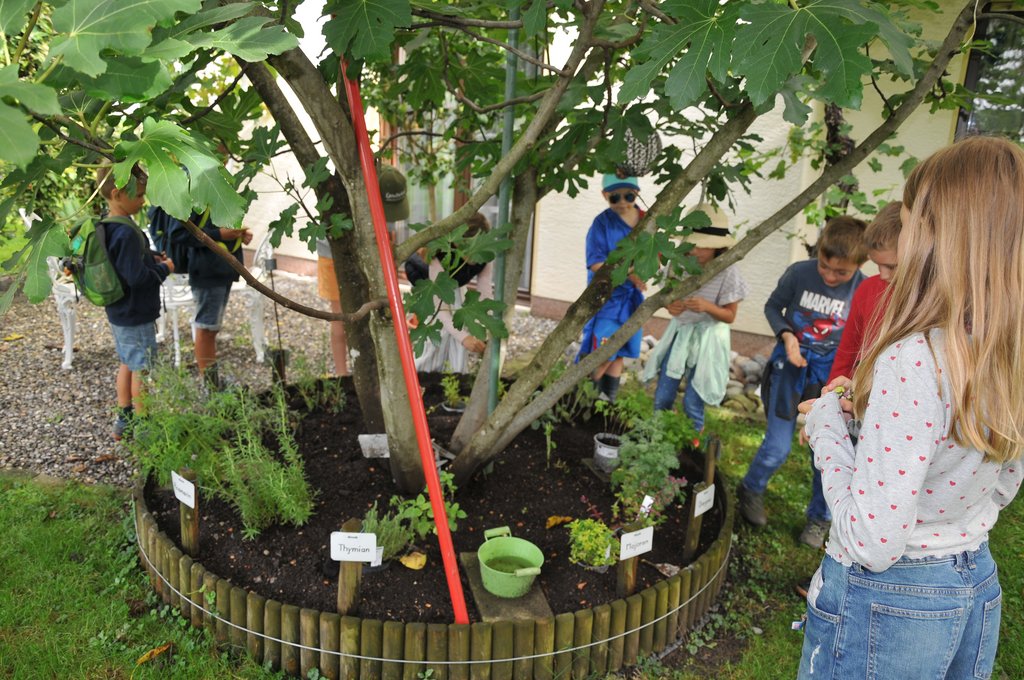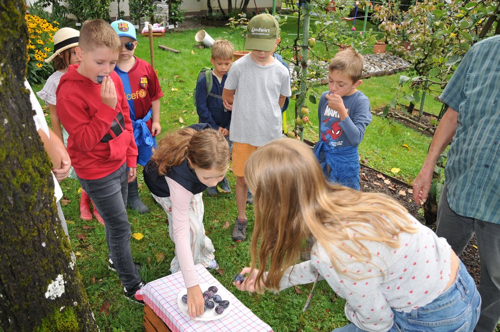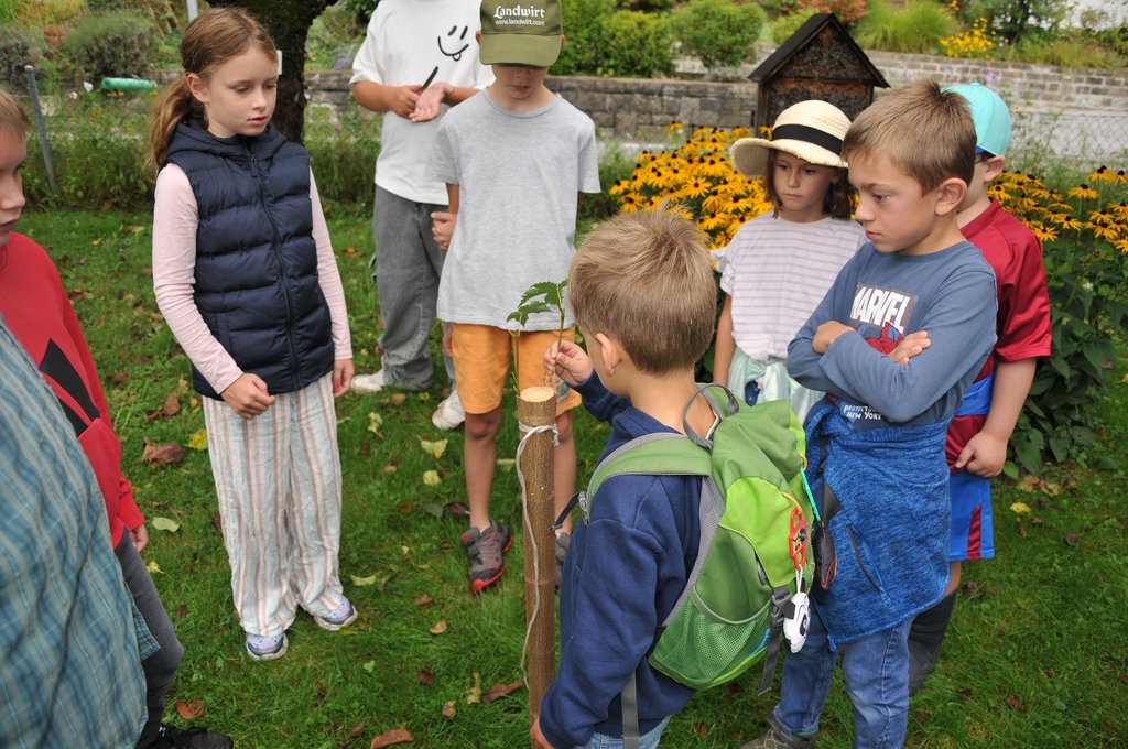 Mit viel Fachwissen und Leidenschaft führte Nikolaus Peer die Kinder durch den liebevoll angelegten Garten. Dabei erfuhren die jungen Teilnehmerinnen und Teilnehmer, wie Obst, Gemüse und Kräuter wachsen, wie man sie pflegt – und worauf man beim Ernten achten sollte. Probieren mit allen Sinnen war angesagt!