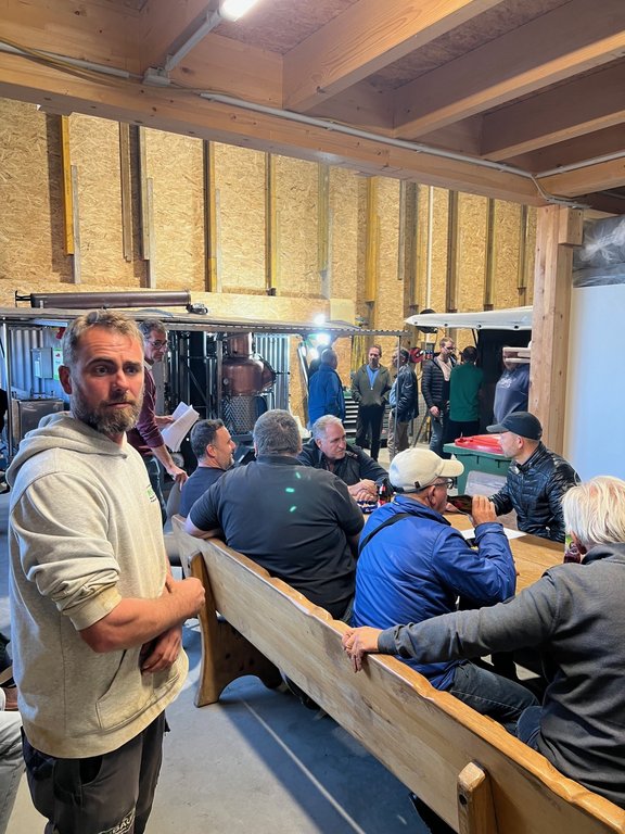 Am 2. Oktober 2025 fand bei der Firma Rubau in Hard, Grafenweg 13, die Brennereieinschulung an unseren beiden Anlagen statt. 35 interessierte Teilnehmerinnen und Teilnehmer wurden vom Hersteller der Anlagen, Herrn Arnold Holstein, persönlich in die faszinierende Welt der Destillation eingeführt.
