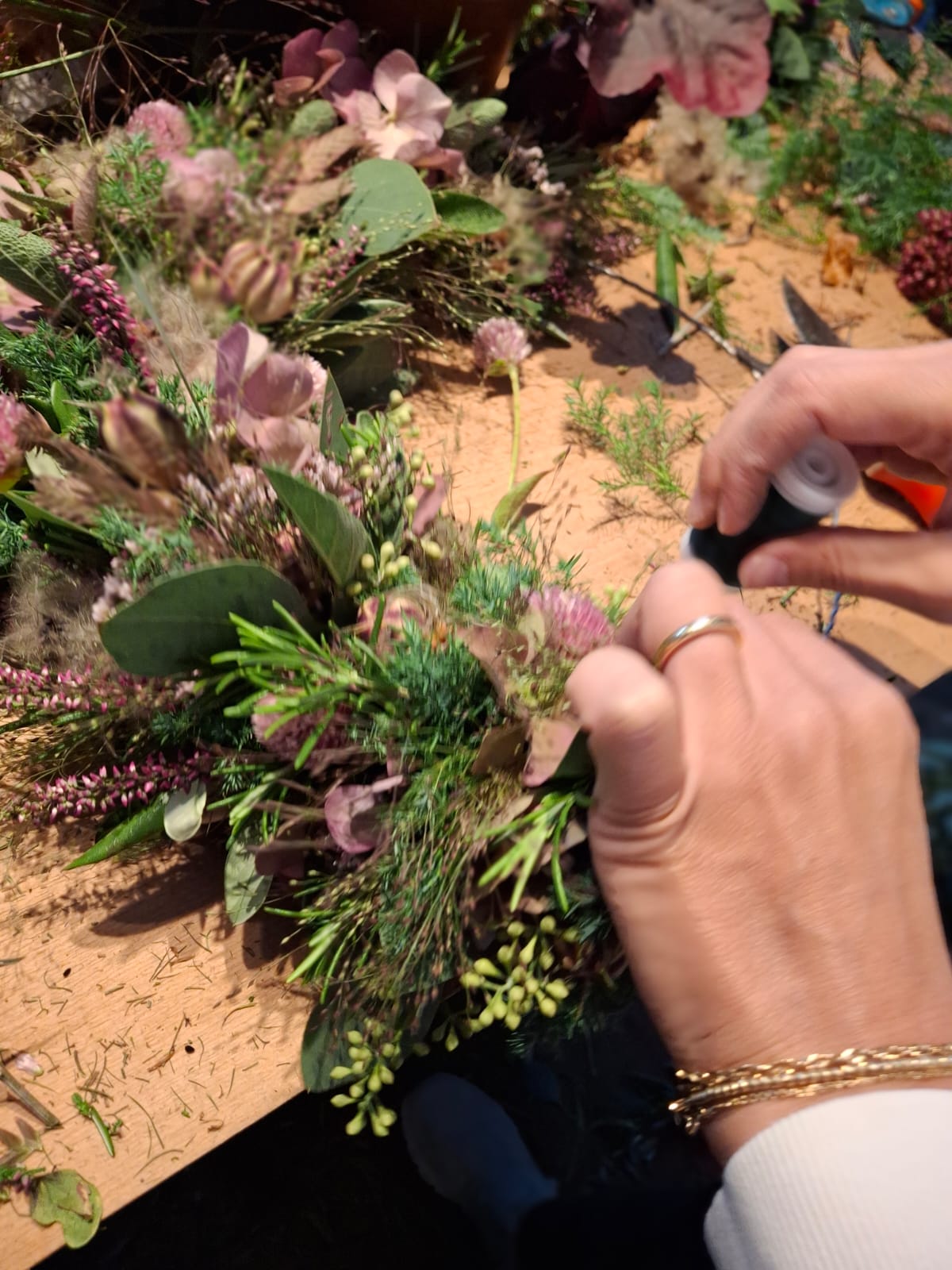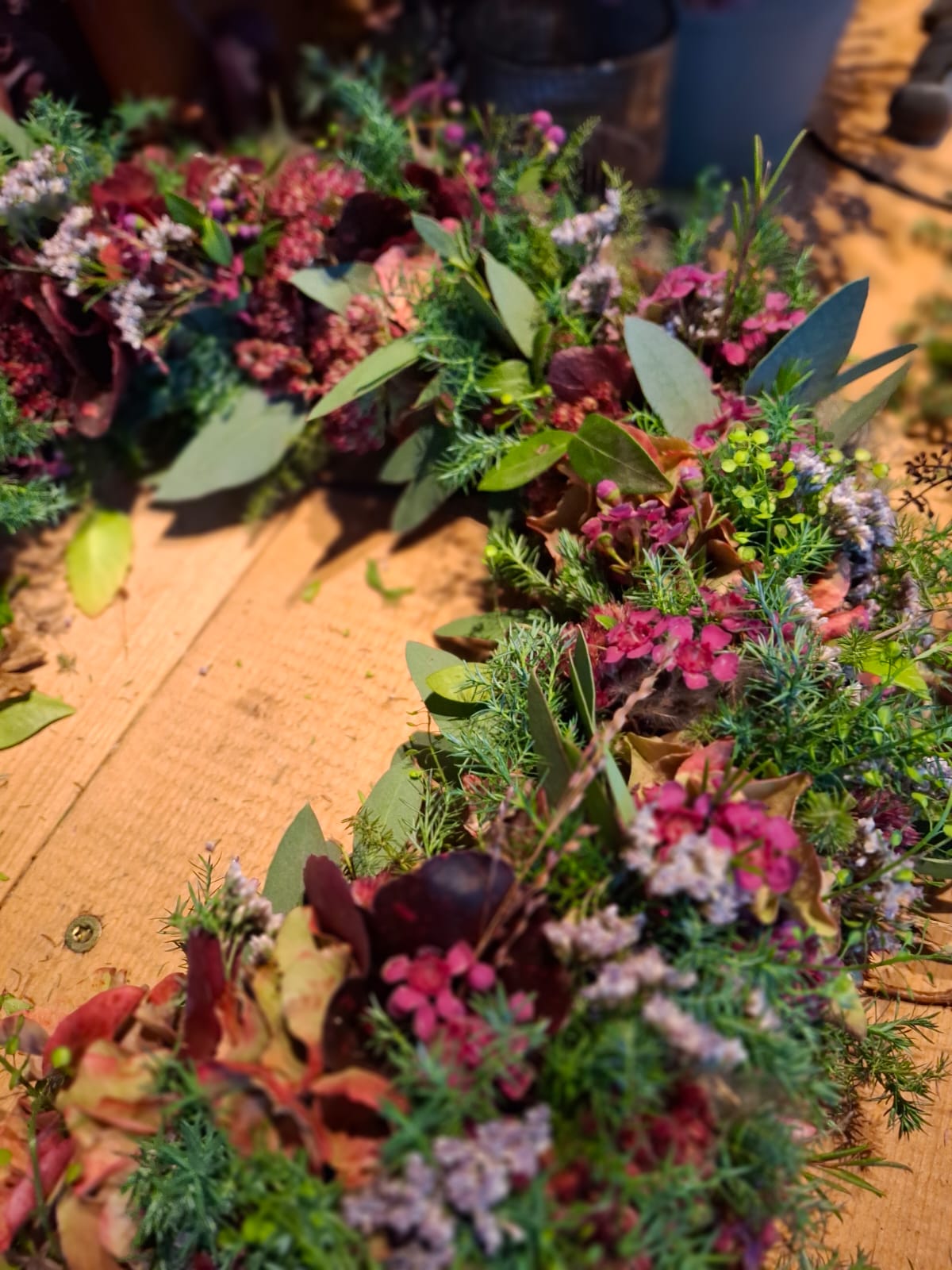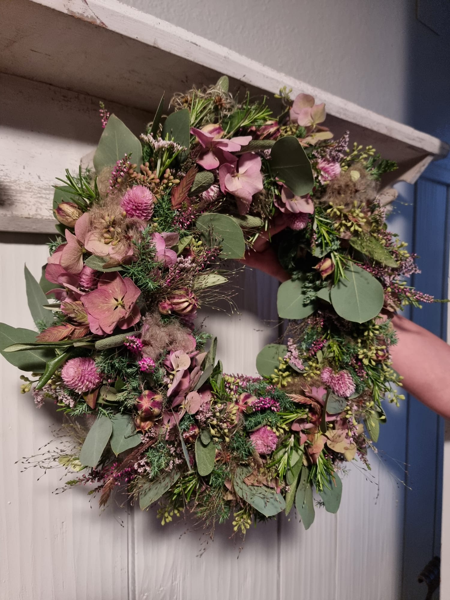 Kräuter, Blüten, Hortensien, Fruchtsände fanden ihren Platz in den verschiedensten Kränzen.