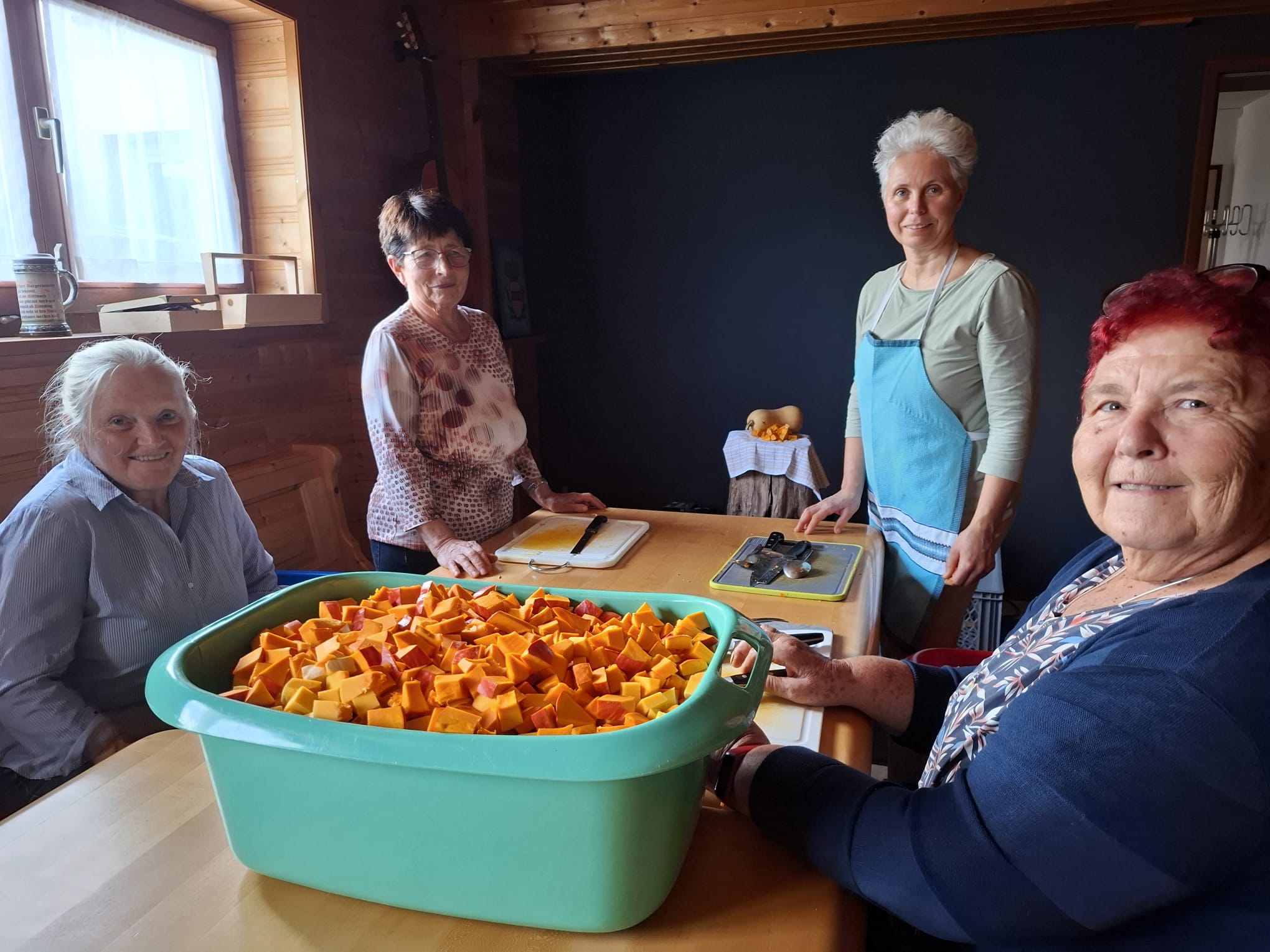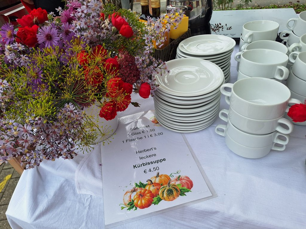 Bei herrlichem Herbstwetter strömten zahlreiche Besucherinnen und Besucher auf den Markt. Schon am Vortag war unser fleißiges Team im Einsatz und schnitt ganze 17 Kilogramm Kürbisse in nur 30 Minuten klein – eine beeindruckende Gemeinschaftsleistung!