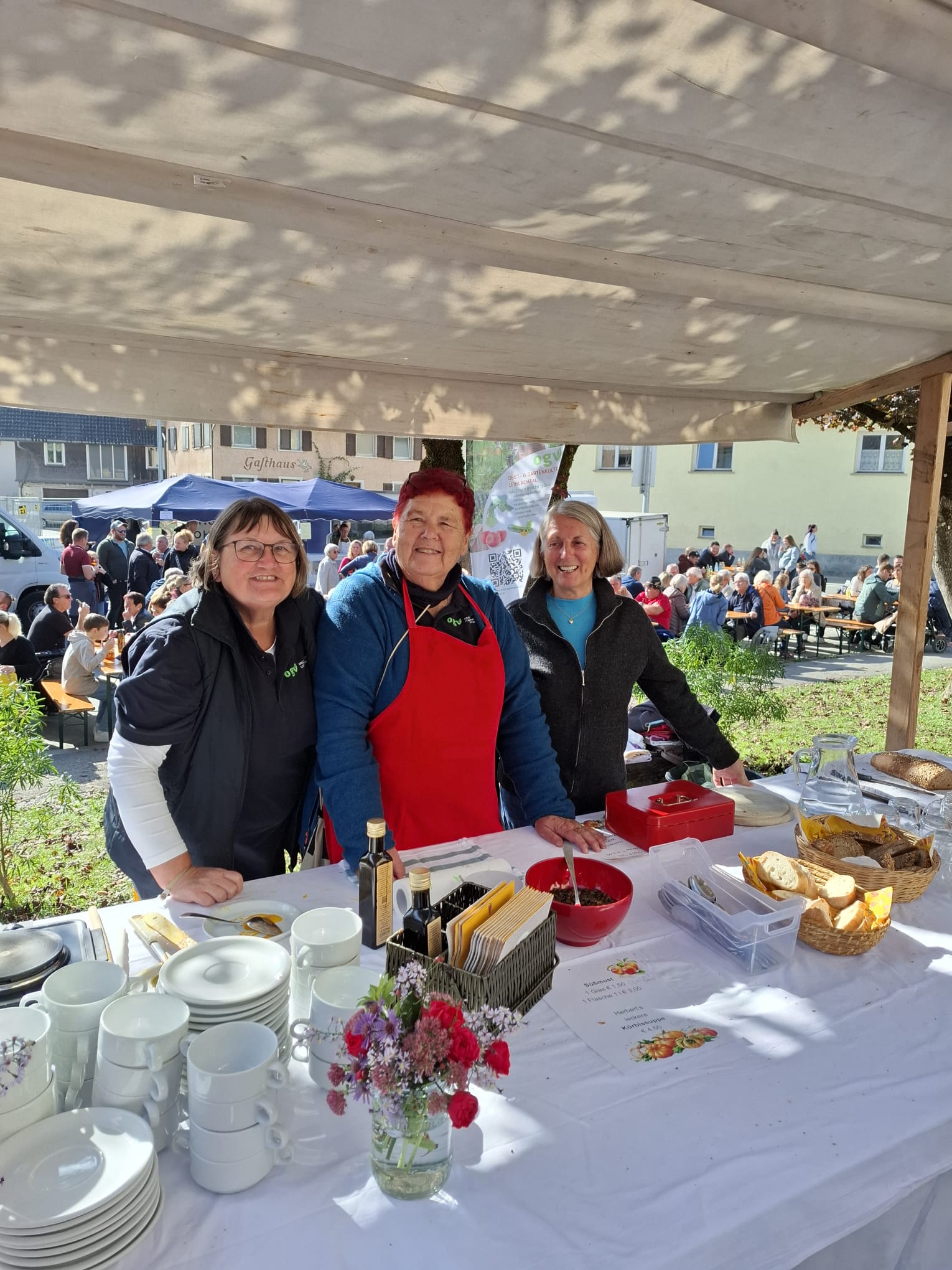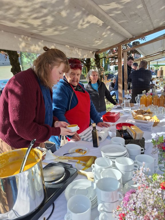 Der Obst- und Gartenbauverein Leiblachtal ist bereits seit vielen Jahren fixer Bestandteil des Herbstmarkts und überzeugt jedes Jahr mit einem bestens eingespielten Team. Am Stand lockte wieder Herberts beliebte Kürbissuppe, die dank geheimer Zutaten – heuer noch zusätzlich eine Prise rosa Pfeffer – ihren unverwechselbaren Geschmack erhält.