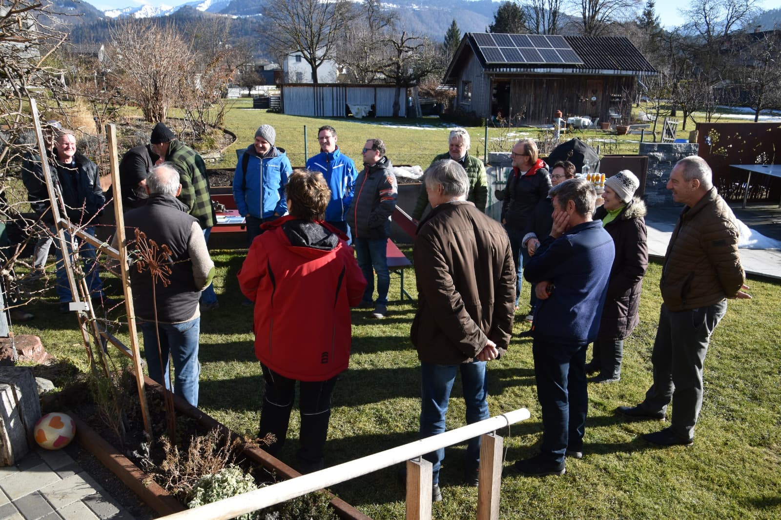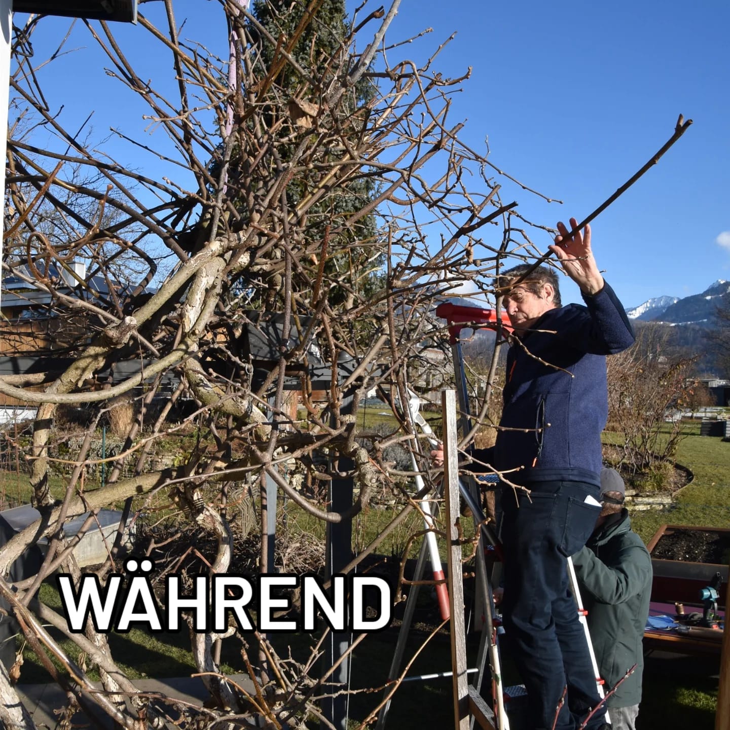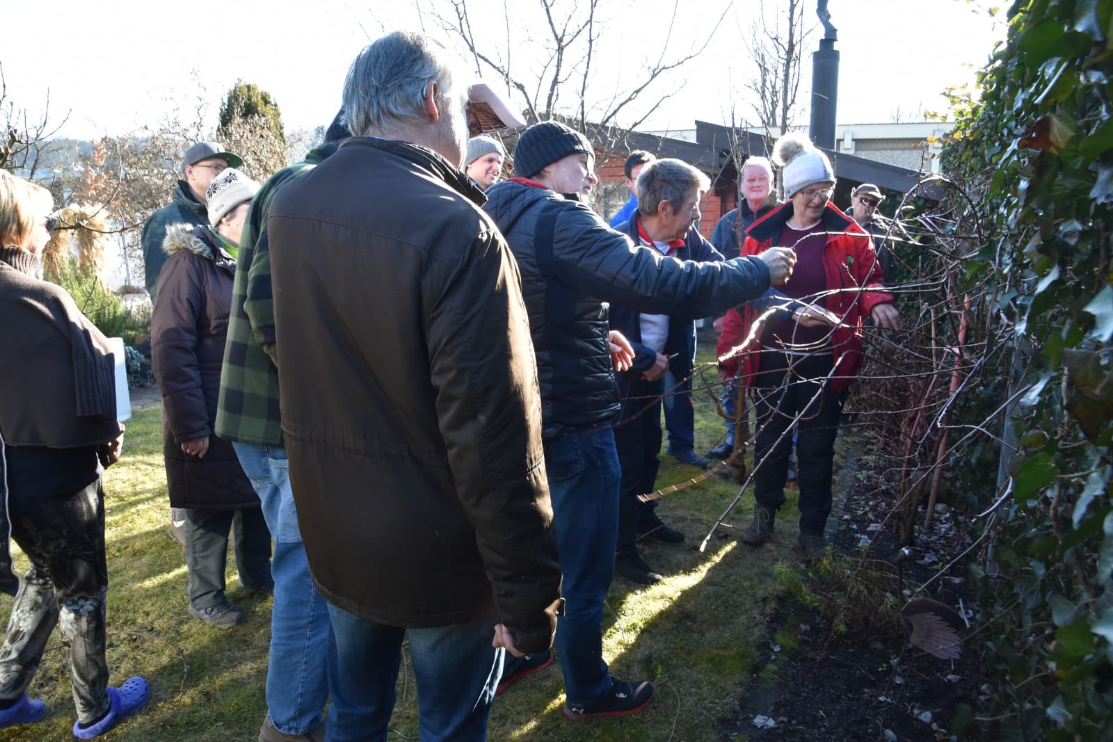 Wie man eine Kiwi schneidet - Das Gartenjahr 2026 befindet sich in den Startlöchern. Die ersten Arbeiten im Garten können bereits gemacht werden, wie z.B. der Schnitt von Obstgehölzen. Am Samstag zeigte unsere Baumwärterin Marianne Scheidbach wie die exotischen Beeren! geschnitten werden können, um eine erfolgreiche Ernte zu erreichen. Einerseits durften die Teilnehmer:innen an etwas älteren Bäumen einen ersten Schnitt machen. In einem anderen Garten konnte ein von Anfang an strikt erzogener Baum geschnitten werden.