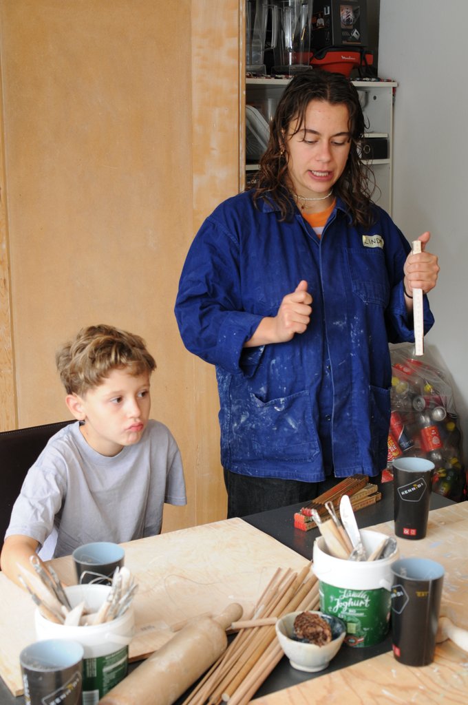 Es wurden mit Linda Ollmann Tonziegel getöpfert, Markhölzer und Markstängel fein säuberlich gesägt und abgeschliffen und ein massiver Robinienstamm vorgebohrt. Nur mit der Hilfe aller Anwesenden war das möglich, deswegen wurden kurzerhand auch Andreas Wally von der Gemeinde und der Fotograf Peter Steidl eingespannt.