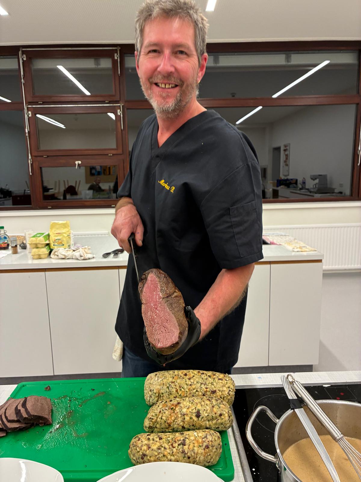 Eine kleine Gruppe vom OGV hat am Kochkurs teilgenommen. Gekocht wurde eine Leberspätzlesuppe zur Vorspeise, Hirschbraten mit Semmelknödel und Blaukraut als Hauptgang und als Nachspeise ein Apfel-Kürbis-Crumble.
