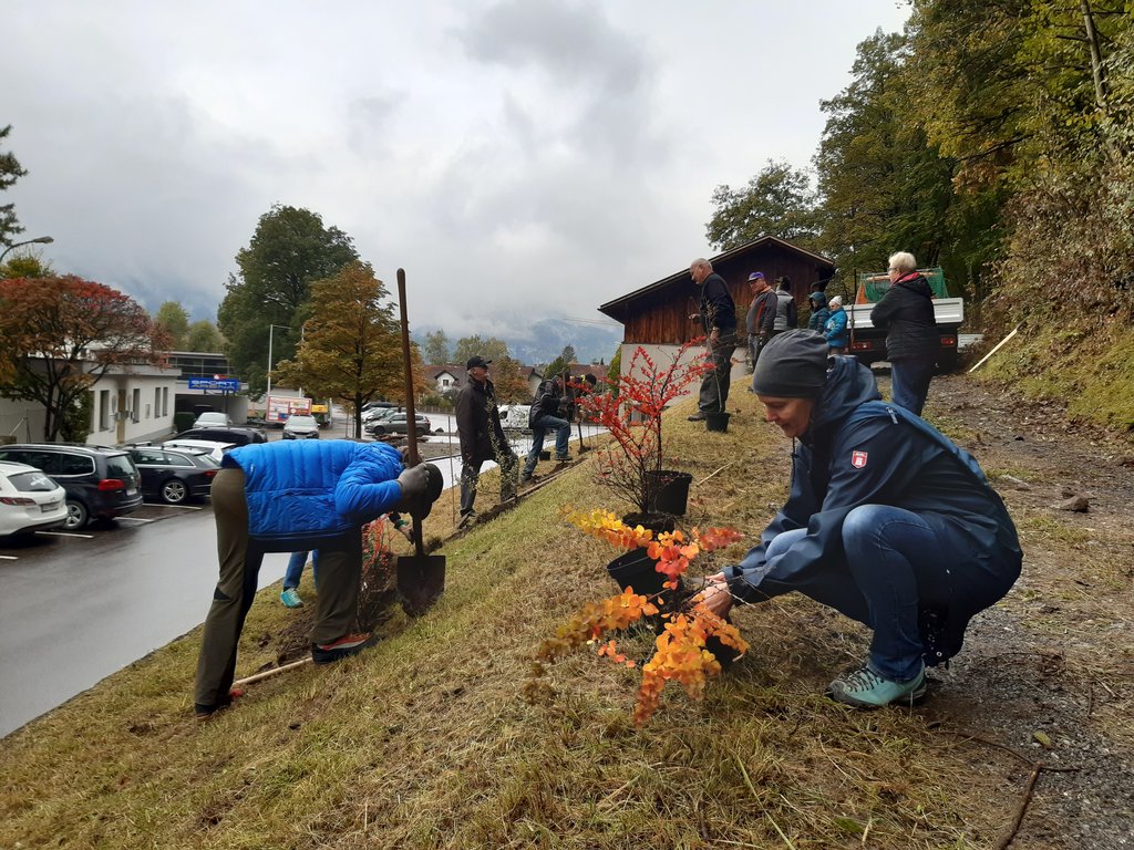 Am 17.10.2020 war dann der Praxisteil an der Reihe. Gegenüber vom Untersteinstadion - Auffahrt Sandsilo - pflanzten wir unter Anleitung vom Stadtgärtner Lorenz Bischof eine Vielzahl von Hecken und Sträucher. Dazu gab es laufend Erläuterungen welcher Busch, welche Hecke für Insekten oder mehr für Vögel zuständig ist. Lorenz Bischof wurde mit Fragen bombardiert, die er alle ruhig und kompetent beantwortete.