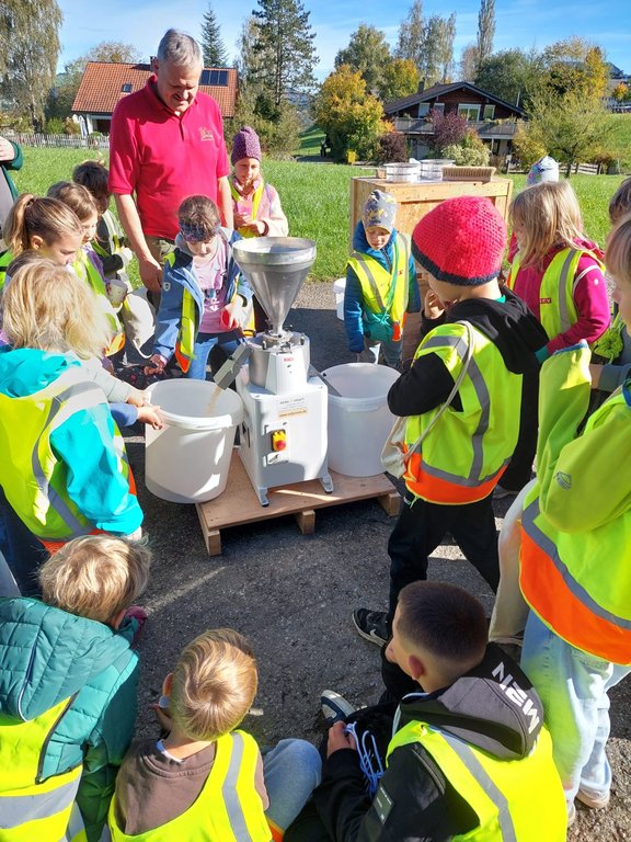 Eindruck der Kinder der VS Dreßlen: Wir durften hautnah erleben, wie aus Äpfeln Saft und aus Korn Mehl entsteht. Dabei wurde uns bewusst, wie viel Arbeit und Wert hinter einem Kilo Mehl und unserem täglichen Essen steckt. Essen ist kostbar! Ein herzliches Dankeschön an den OGV für diesen lehrreichen und begeisternden Vormittag!