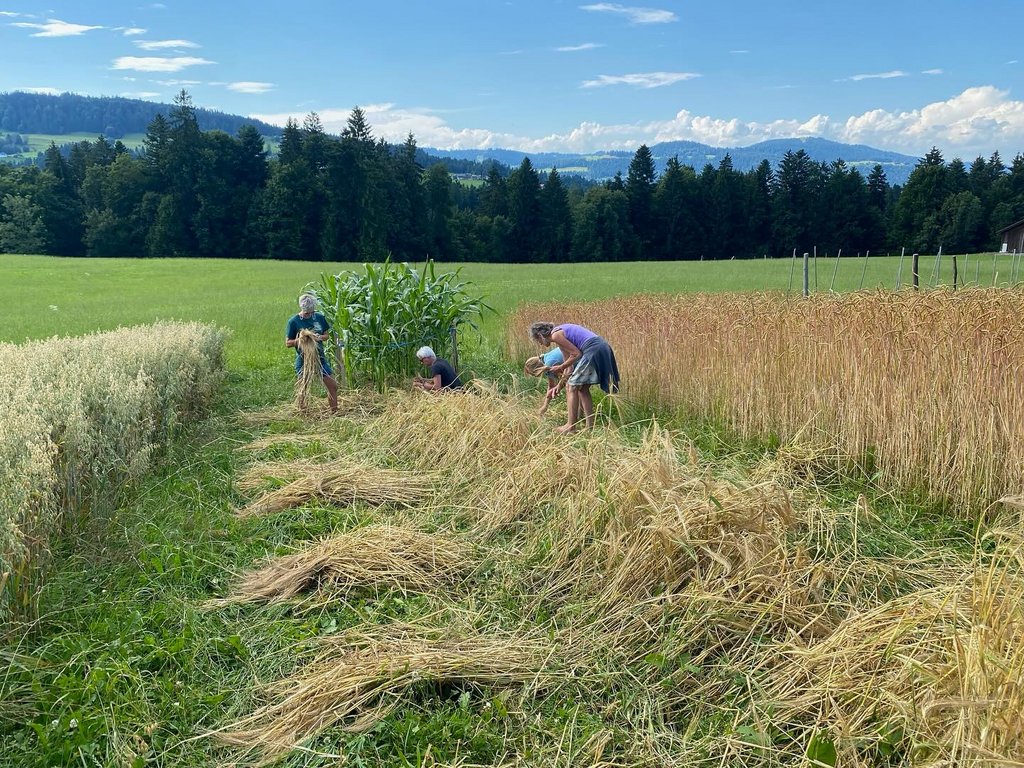 Auf unsere Initiative hin und im Rahmen unseres Frühjahrseminars wurde in diesem Jahr in mehreren Gemeinden im Bregenzerwald Getreide – meist Dinkel – angebaut. Nach unseren Informationen haben Landwirtinnen und Landwirte in Alberschwende, Langenegg, Egg, Andelsbuch, Bezau, Schnepfau, Schoppernau, Doren, Sibratsgfäll, Riefensberg und Sulzberg, Versuche im Getreideanbau gestartet oder fortgeführt. Besonders erfreulich ist, dass das Interesse daran weiterhin ungebrochen ist.