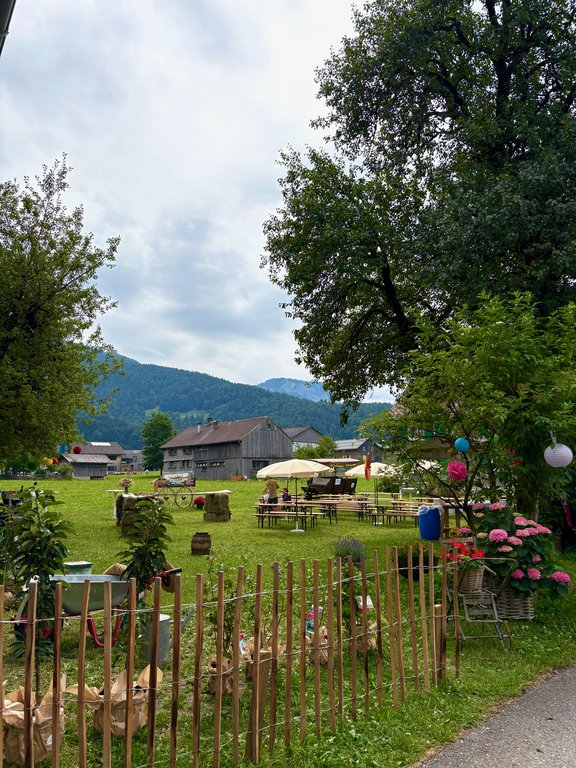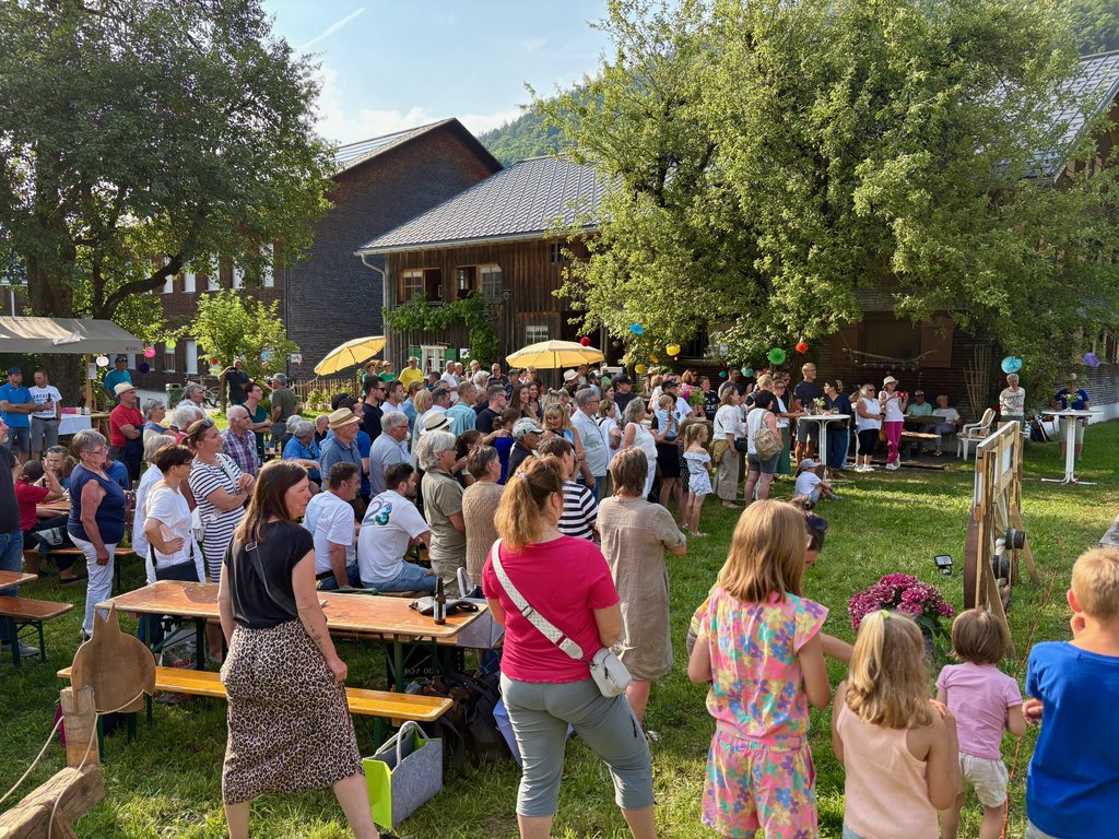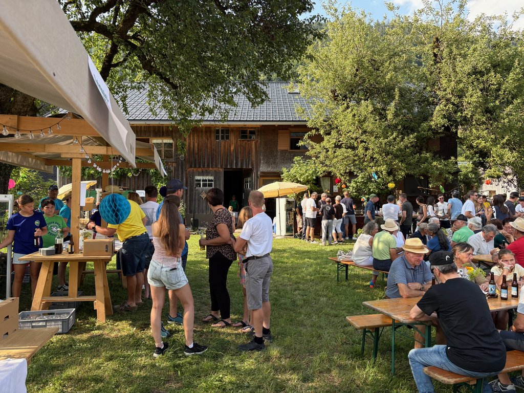 Und wie könnte man das besser tun als mit einem Sommerabend mitten im Dorf, unter freiem Himmel, im Gälleles Garto – auf der Wiese eines wunderschönen alten Bregenzerwälderhauses?
