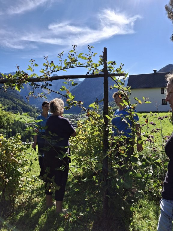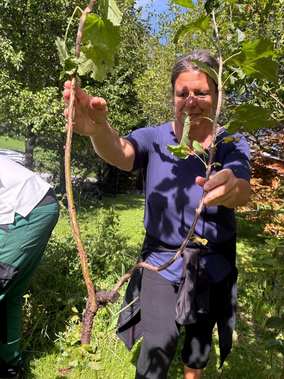 An verschiedenen Beerensträuchern – von schwarzen, weißen und roten Johannisbeeren über Stachel- und Himbeeren bis hin zu Heidel- und Brombeeren – wurde gezeigt, wie der Schnitt je nach Sorte unterschiedlich erfolgen muss. Auch beim sehr ertragreichen Zwetschgenbaum wurde noch kurz der passende Herbstschnitt nach der Ernte besprochen. Die Besucher:innen packten tatkräftig mit an und konnten sich dabei viel praktisches Wissen aneignen.
