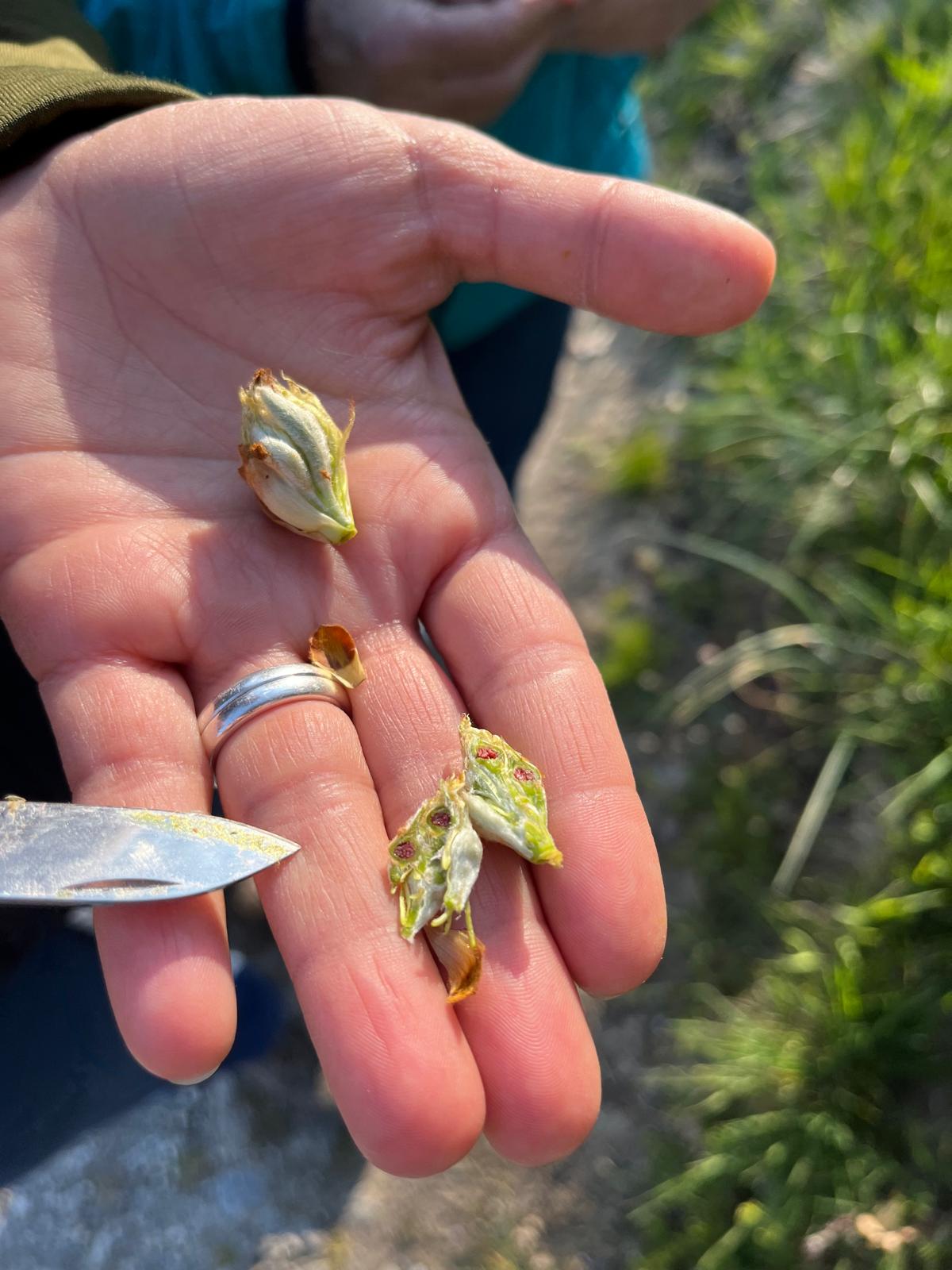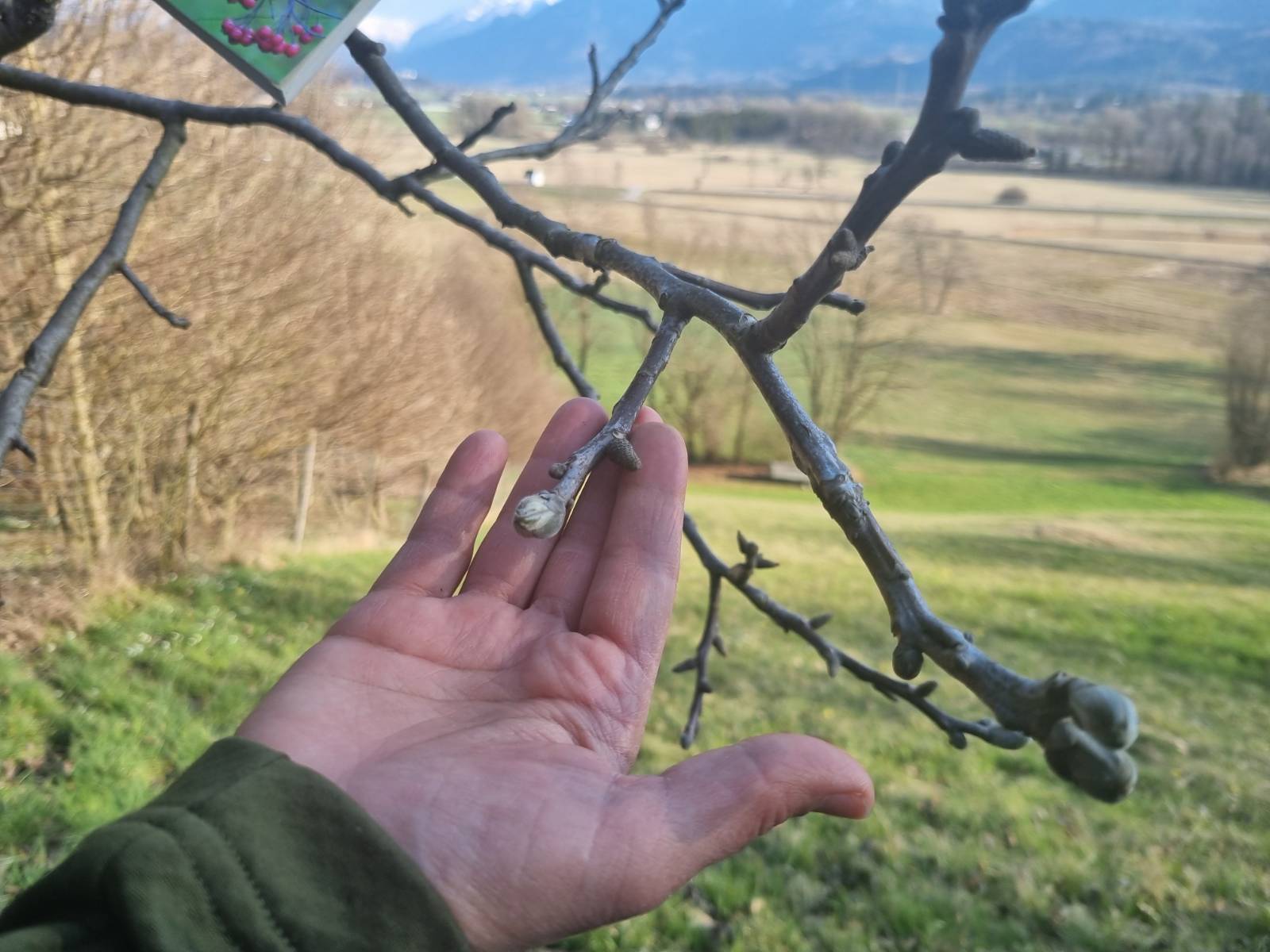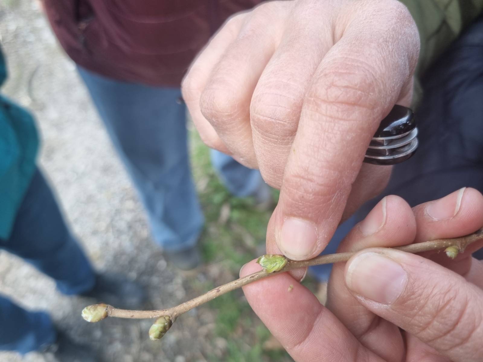 Im Anschluss folgte der praktische Teil: Ein etwa 1,5-stündiger Knospenspaziergang in Satteins entlang am alten Römerweg. Die Teilnehmer lernten in der Natur, wie man Bäume und Sträucher im unbelaubten Zustand anhand ihrer Knospen sicher bestimmen kann. Frau Tiefenthaler gab dabei wertvolle Tipps zum behutsamen Sammeln und zur direkten Anwendung im Alltag.