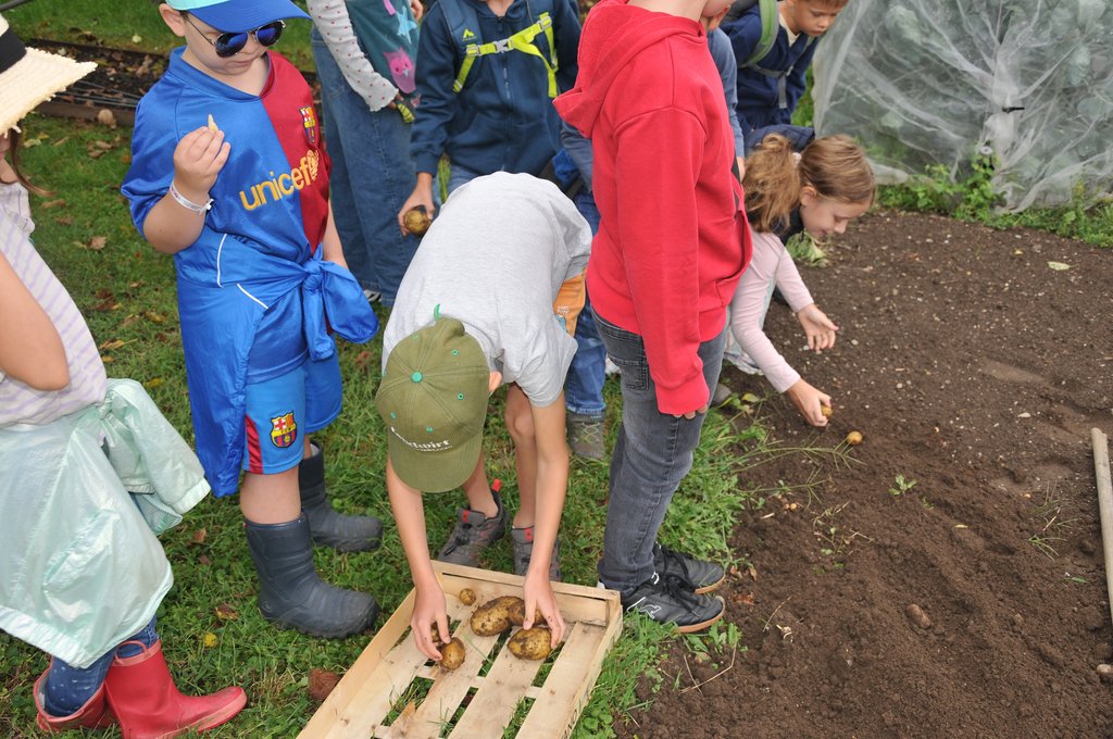 Am Ende der Führung durch den Garten gab es köstliche Wedges für die Kinder. Als kleines Geschenk bekamen sie verschiedene Trauben, Kartoffel und ein Zwiebelmännchen.