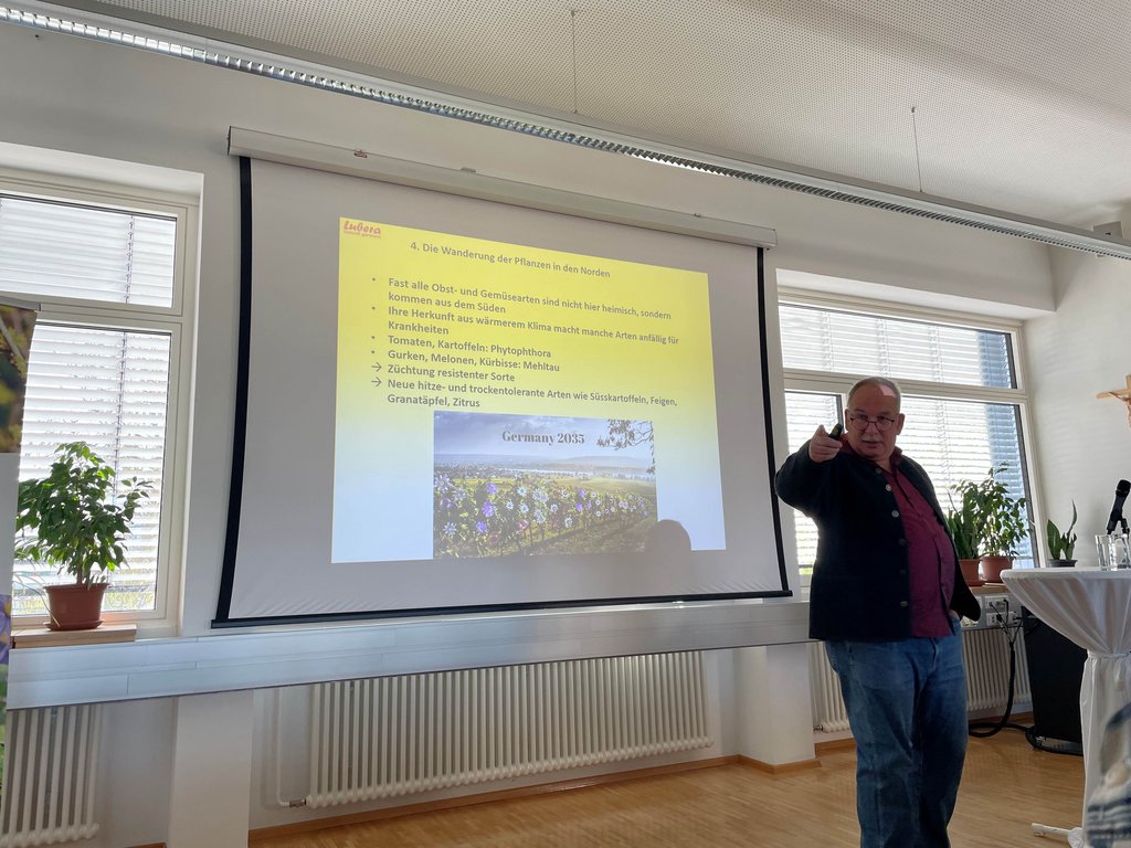Georg Müller präsentierte Statistiken zum Klimawandel und stellte verschiedene Gemüseraritäten vor, die er selbst erfolgreich anbaut und vermehrt.