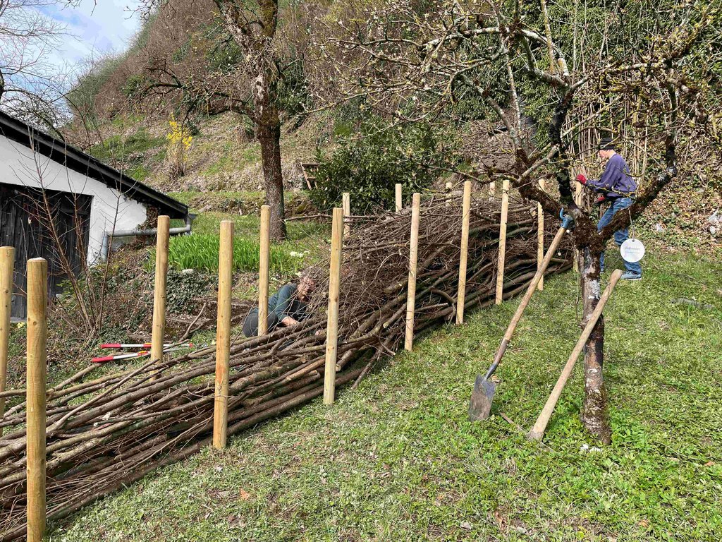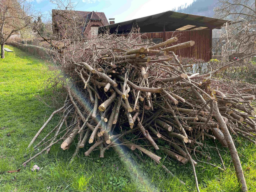 Ich habe mich am NA gleich dran gemacht, und im Weingarten meines Sohnes mit Schnittgut der Obstbäume und Reben eine Benjeshecke zu bauen. Sie ist 7m lang geworden!! Und ca. 1m hoch. Bin gespannt, wer sie als erstes besiedelt.
