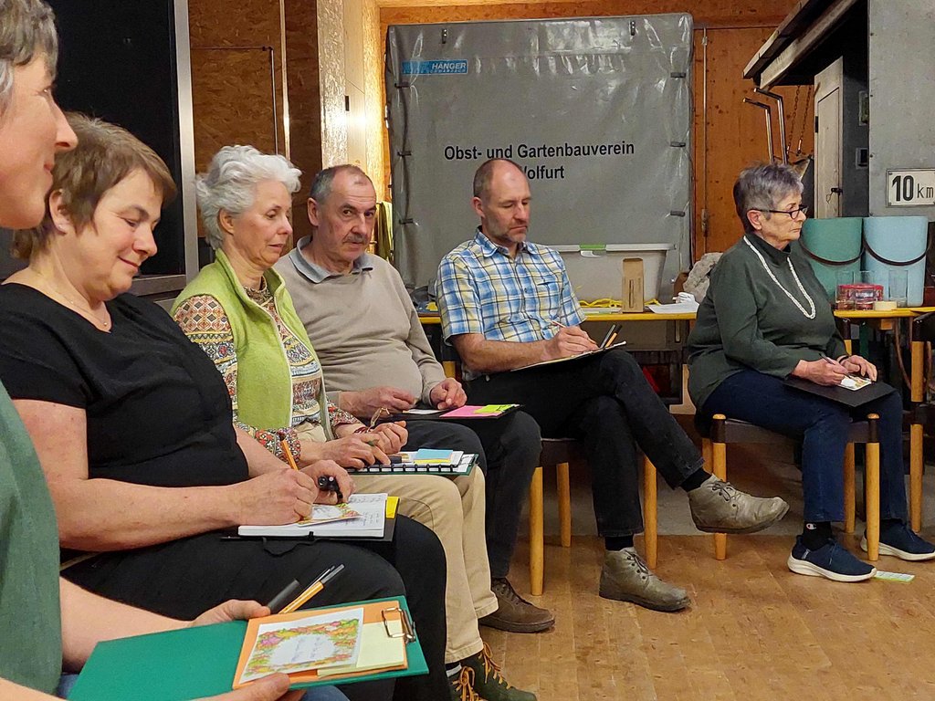 Beim Workshop unter dem Motto „Auftreten, Anleiten, Ankommen – Wie unser Gehirn Kommunikation steuert“ trafen sich Funktionäre der Obst- und Gartenbauvereine im Schopf des OGV-Wolfurt.