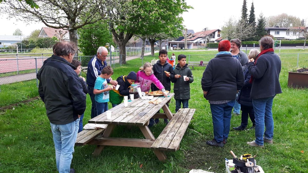 Am Dienstag trafen sich 10 Volksschüler mit Papas und Großvätern und unserem Helfer Sigi im Hof der Volksschule Lochau.