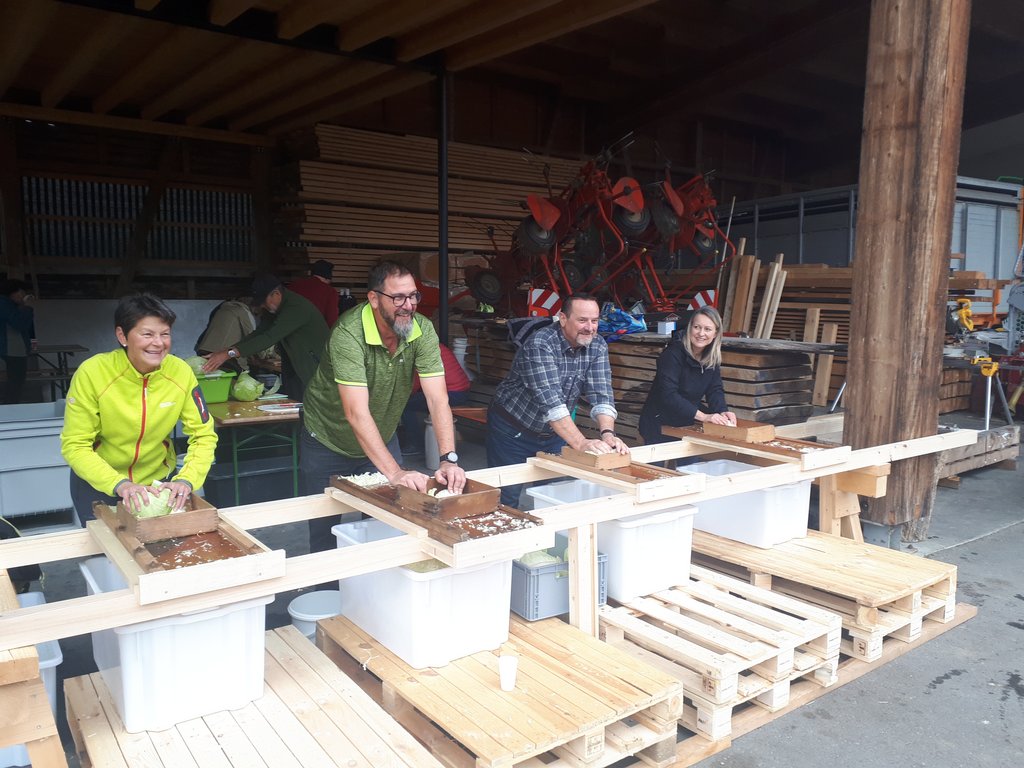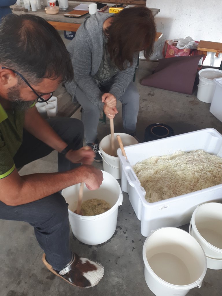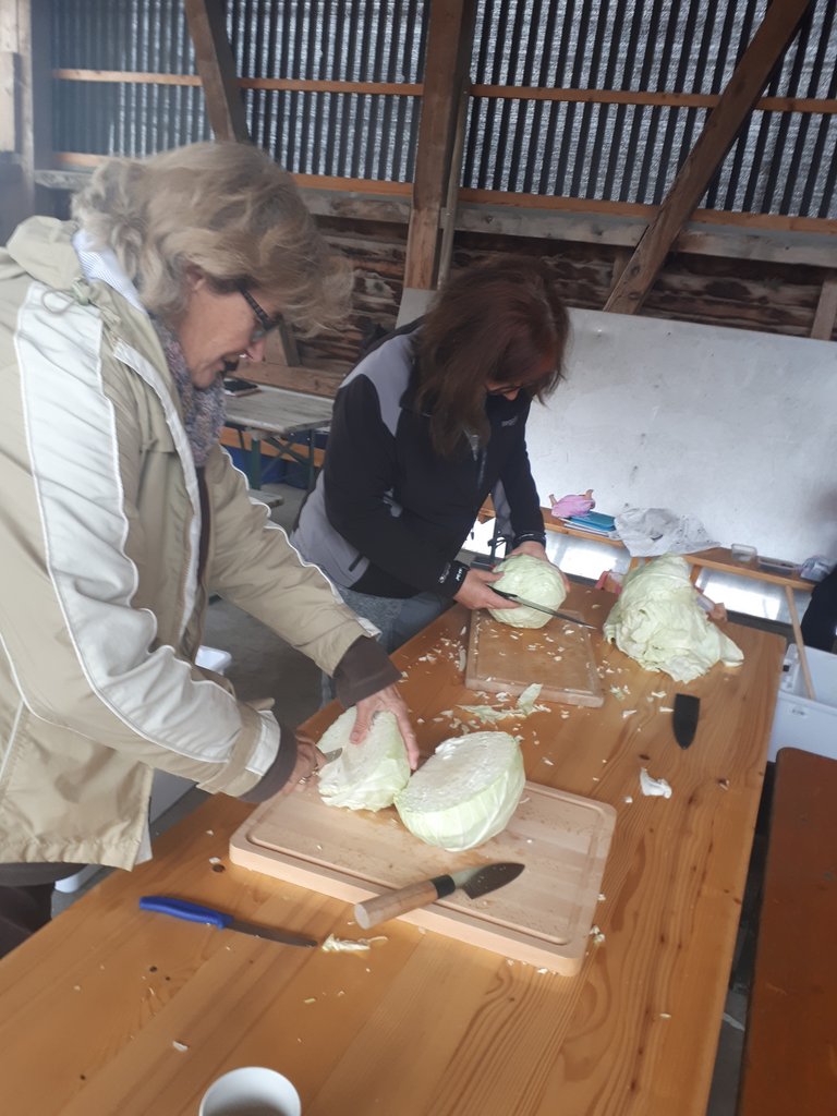 Wegen Corona brachte jeder Kraut selber mit und auch das Einmachbehältnis.