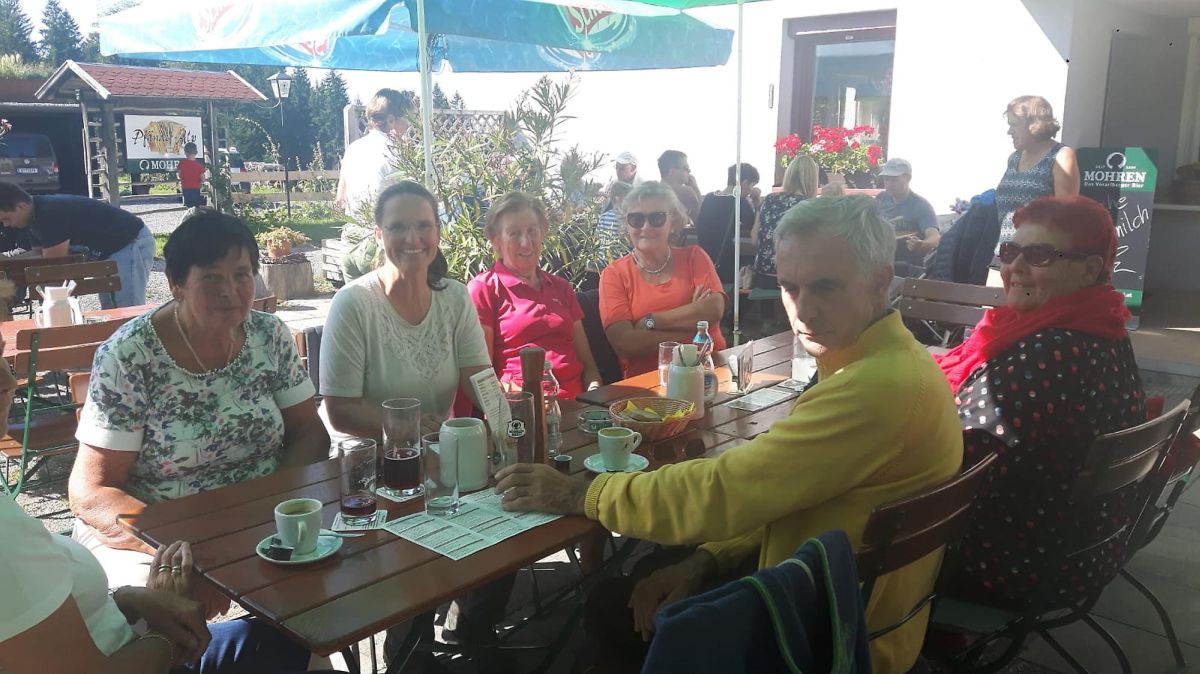 Aufs freundlichste bedient und gesättigt ging es nun an der Pfänderstraße entlang Richtung Eichenberg. Bald bogen wir Richtung Höhenweg ab. Nach einer kurzweiligen Wanderung trafen wir bei Familie Vogler ein.