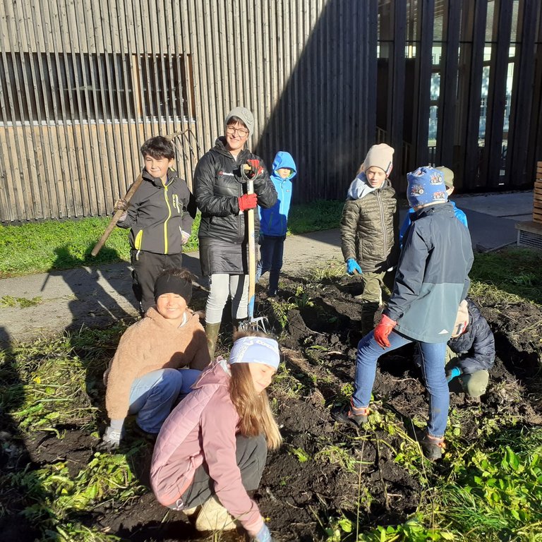 Letzte Woche war richtig was los. Gemeinsam mit der 4. Klasse der VS Mellau, Lehrerin Herlinde Simma und Astrid Innauer vom OGV haben wir die Kartoffeln ausgegraben - und das mit vollem Einsatz!