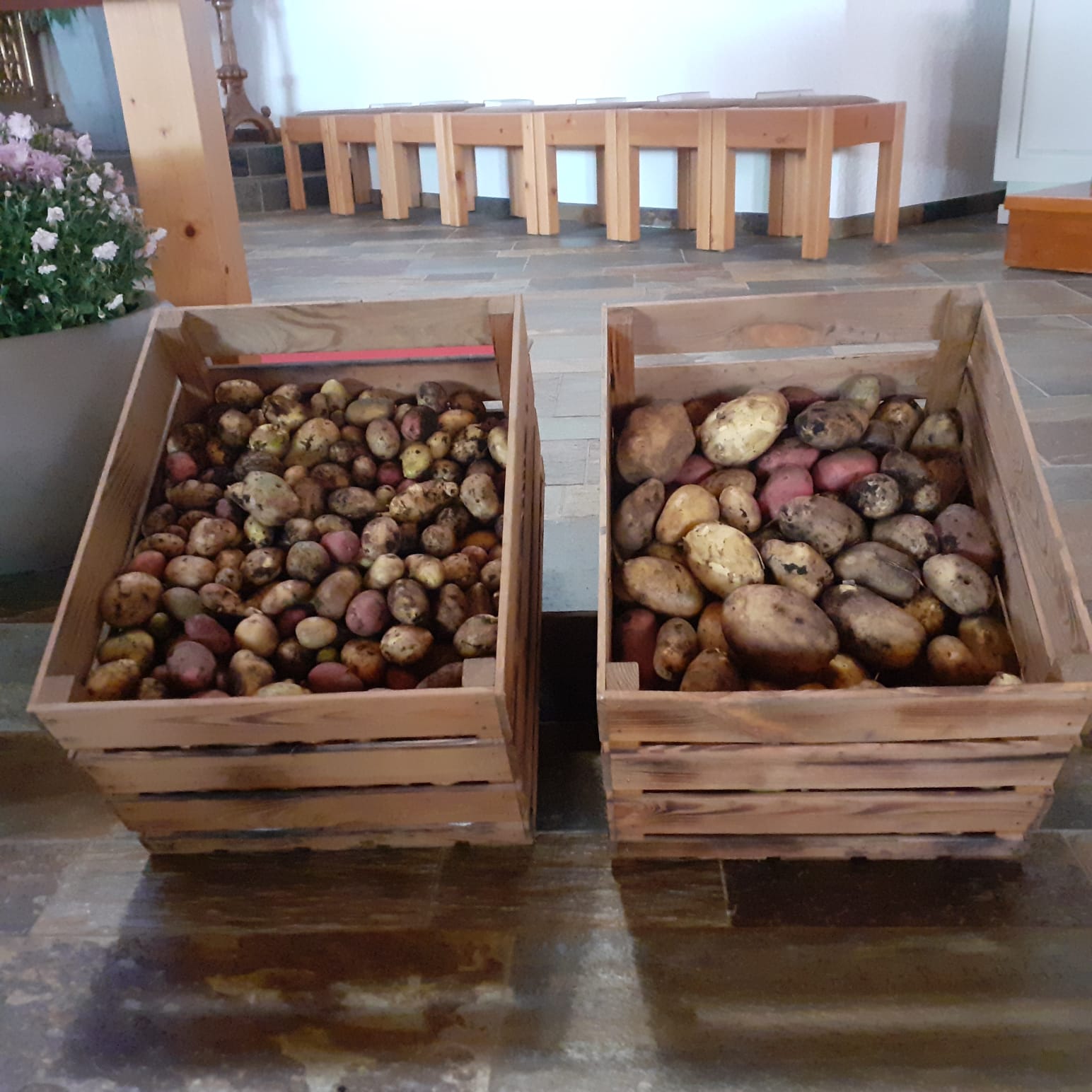 Am Ende gab's zwei volle Kisten mit Kartoffeln. Die wurden dann am Freitag bei der Schülermesse gesegnet.