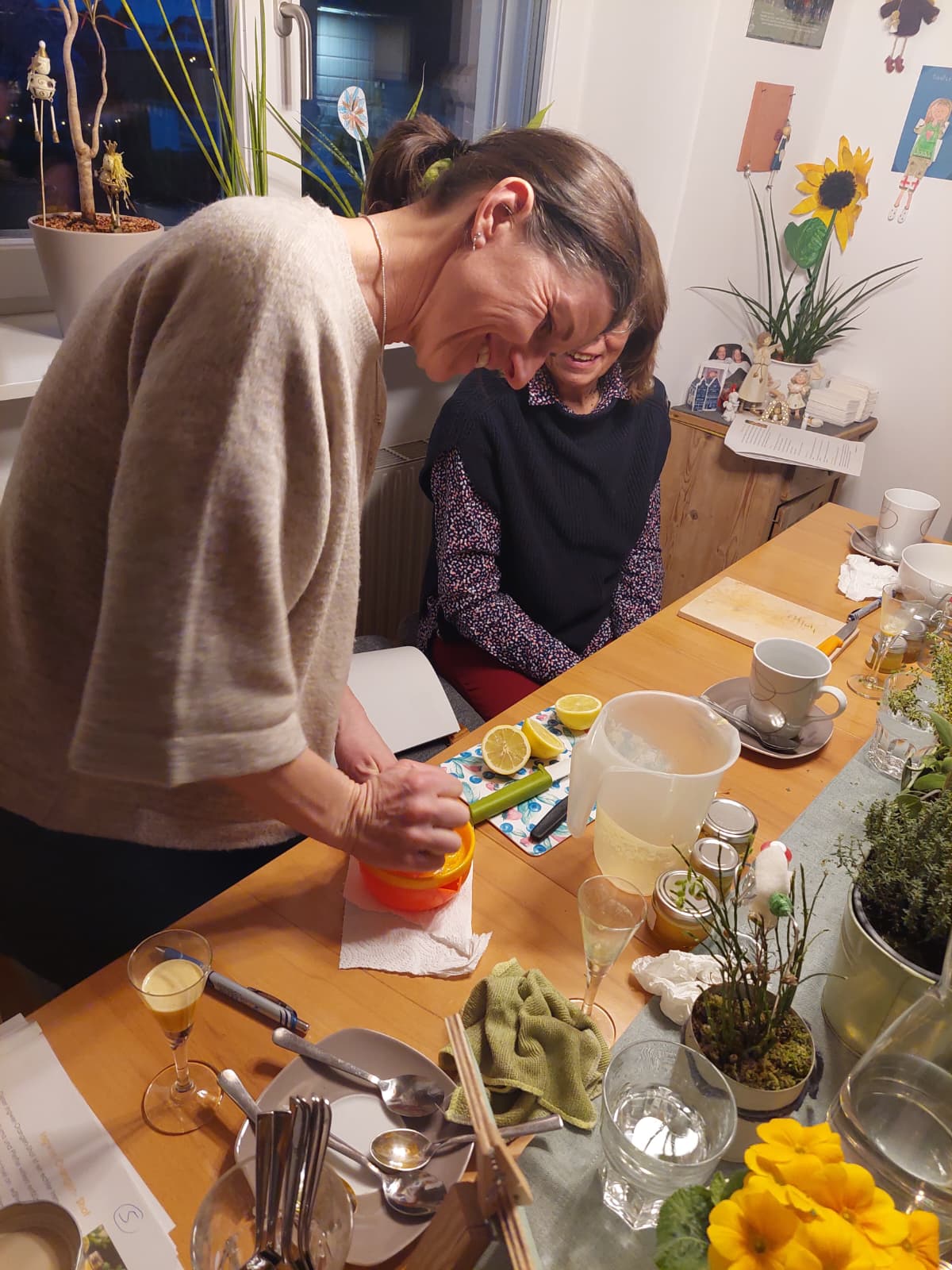 Unter fachlicher Anleitung wurden gemeinsam Augenpads mit Thymian und Kamille hergestellt, ein Thymianbrustbalsam gerührt, ein Zwiebel-Hustensirup angesetzt sowie ein Ingwer-Orangen-Shot und ein Ingwer-Kurkuma-Oxymel zubereitet. Dabei wurde nicht nur konzentriert gearbeitet, sondern auch viel gelacht. Der Austausch untereinander machte den Workshop besonders lebendig und interessant. Immer wieder sorgten kleine Experimente und Hintergrundinformationen für echte ah-Erlebnisse. So nahmen die Teilnehmenden nicht nur selbst hergestellte Naturprodukte, sondern auch wertvolles Wissen für die Erkältungszeit mit nach Hause.