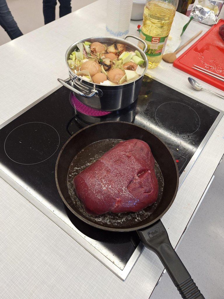 Eine kleine Gruppe vom OGV hat am Kochkurs teilgenommen. Gekocht wurde eine Leberspätzlesuppe zur Vorspeise, Hirschbraten mit Semmelknödel und Blaukraut als Hauptgang und als Nachspeise ein [xxx wird nachgereicht xxx].