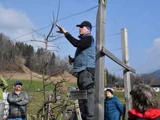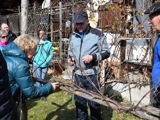 Die Kursteilnehmer lernen den fachgerechten Winterschnitt von Reben, die Grundlage für gesunde…
