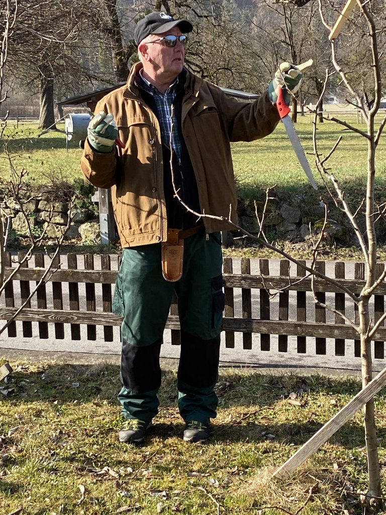 Wir konnten am 19.03.2022 von 09.00 bis 12.00 Uhr den geplanten Winterschnittkurs bei strahlendem Frühlingswetter durchführen. 18 Teilnehmer lauschten gespannt den spannenden Ausführungen unseres bewährten Kursleiters Walter Mungenast. Mit einfachen, aber eindringlichen Worten und Leitsätzen wie Obstbäume vertragen keine Konkurrenten oder geschnitten wird von oben nach unten und von außen nach innen unterstrich er seine praktische Arbeit mit der dazu erforderlichen Theorie. Das gelang im ausgezeichnet, auch wenige Teilnehmer geschockt dem Schnitt von vermeintlich schönen Ästen (Konkurrenten!) zu sehen mussten.