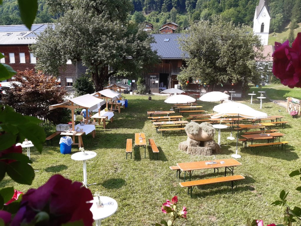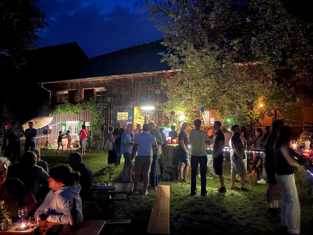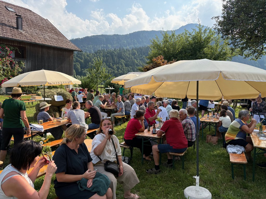 Und wie könnte man das besser tun als mit einem Sommerabend mitten im Dorf, unter freiem Himmel, im Gälleles Garto – auf der Wiese eines wunderschönen alten Bregenzerwälderhauses?