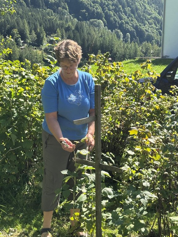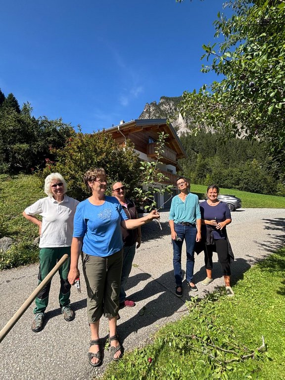 An verschiedenen Beerensträuchern – von schwarzen, weißen und roten Johannisbeeren über Stachel- und Himbeeren bis hin zu Heidel- und Brombeeren – wurde gezeigt, wie der Schnitt je nach Sorte unterschiedlich erfolgen muss. Auch beim sehr ertragreichen Zwetschgenbaum wurde noch kurz der passende Herbstschnitt nach der Ernte besprochen. Die Besucher:innen packten tatkräftig mit an und konnten sich dabei viel praktisches Wissen aneignen.