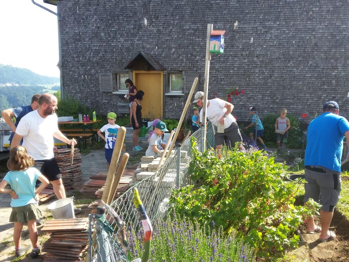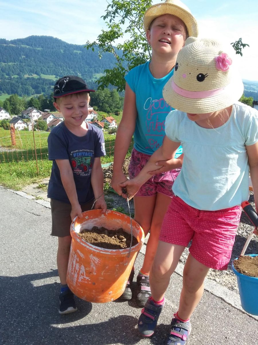 Über ein Dutzend Kids legten tatkräftig Hand an. "Einerseits geht es um die Belebung der Anlage, andererseits um einen Beitrag für Mensch und Tier", so Martin Bereuter, der seit März 2019 dem OGV Buch als Obmann vorsteht. Konkret ergänzen nun eine Kräuterspirale welche aus alten Tondachziegel als Stützmauer angelegt wurde, sowie ein eigener "Feuchtbereich" mit den entsprechenden Pflanzen, den reichhaltigen Bestand. Der Feuchtbereich wurde mittels "Bachlauf" an die Dachentwässerung des Insektenhotels angebunden.