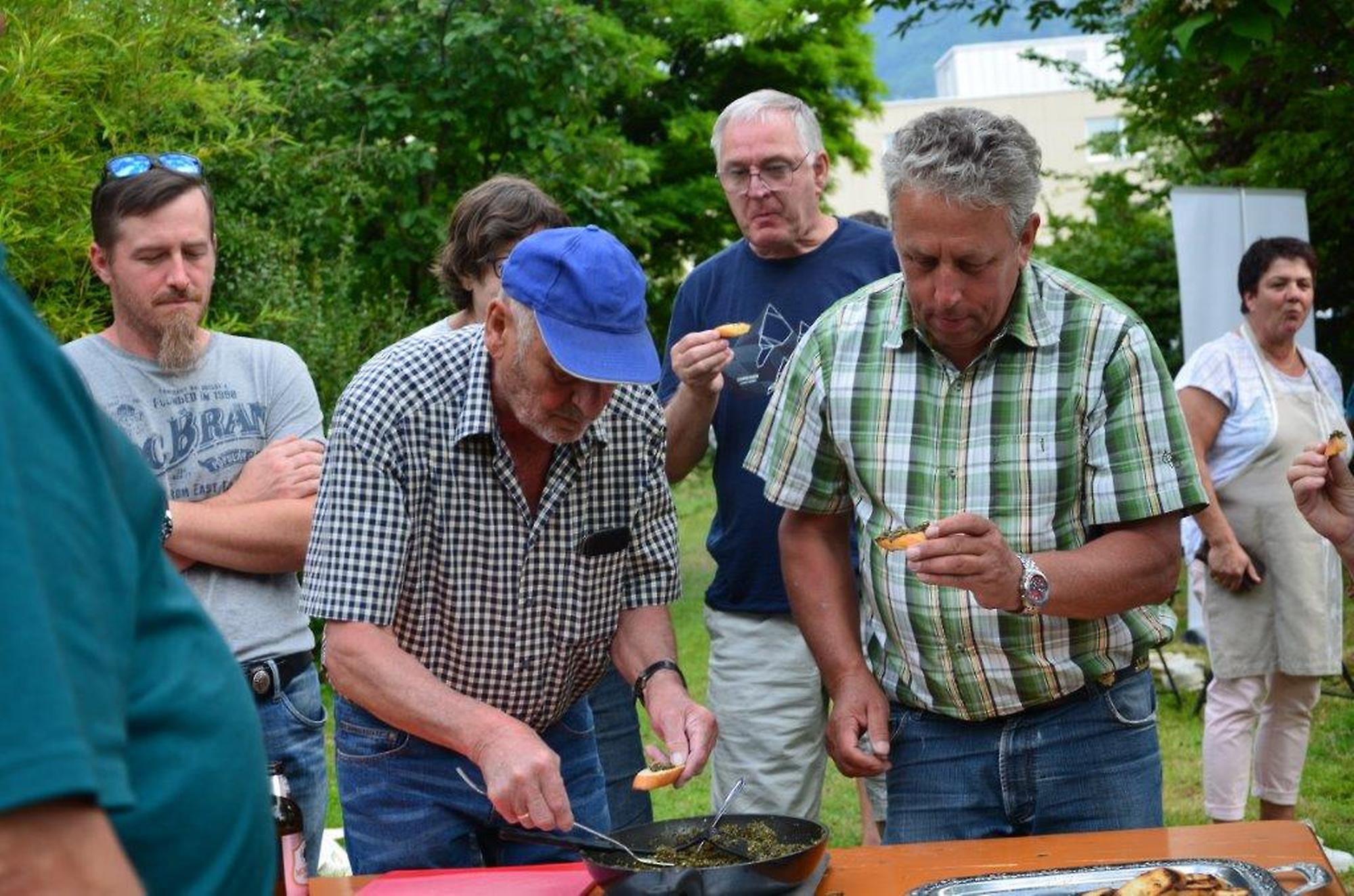 Grillchef Manfred Kremmel aus Lustenau war an diesem Abend in seinem Element: Nach seinen Anleitungen wurde geschnipselt, gewürzt, gegrillt und schön angerichtet. Sein 6-gängiges Menü war köstlich: Crostini mit Kürbilkernpesto, Bruschette mit Tomaten, Zucchinileibchen, ein bunter Sommersalat, kurz gegrilltes Gemüse, Fisch mit Bratkartoffeln, Filet mit Ananas und Curry... und als Abschluss Weingartenpfirsich und Marille auf dem Grill gedünstet und mit Eis angerichtet, die Begeisterung der Anwesenden war riesengroß.