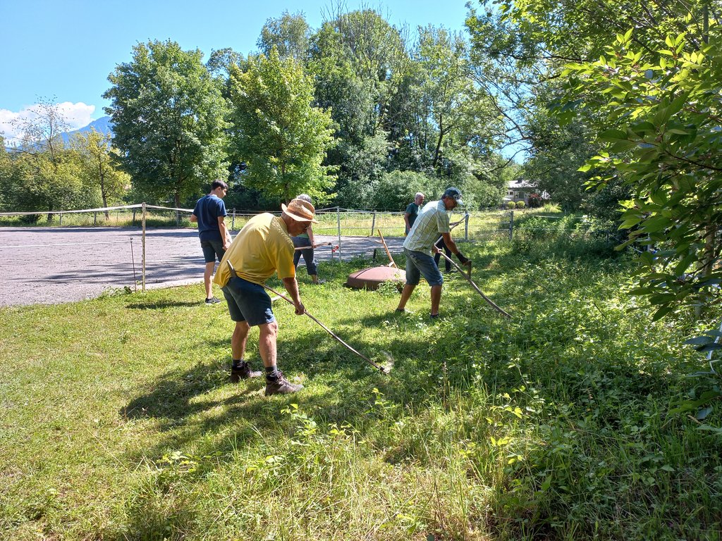 Bei strahlendem Sonnenschein trafen sich einige Interessierte um das Mähen von Hand mit der Sense zu lernen bzw. zu erfahren, welche Tricks und Kniffe beachtet werden müssen, damit dies einfach und ohne großen Kraftaufwand geht.