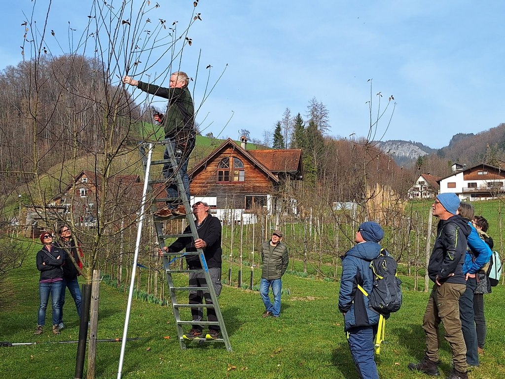 Zum Baumschnittkurs durften wir 34 interessierte Mitglieder begrüssen. Unter der Leitung von Hermann Klien wurde in drei Gruppen die Feinheiten vom Baumschnitt erarbeitet.
