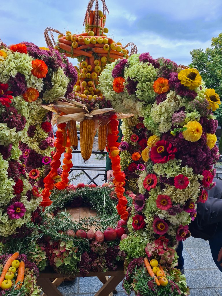Die wunderbare Korne wurde vom Trachtenverein und den Bäuerinnen in die Messe begleitet, wo sie ein schönes Symbol der Dankbarkeit für die guten Ernte dieses Jahres darstellte.