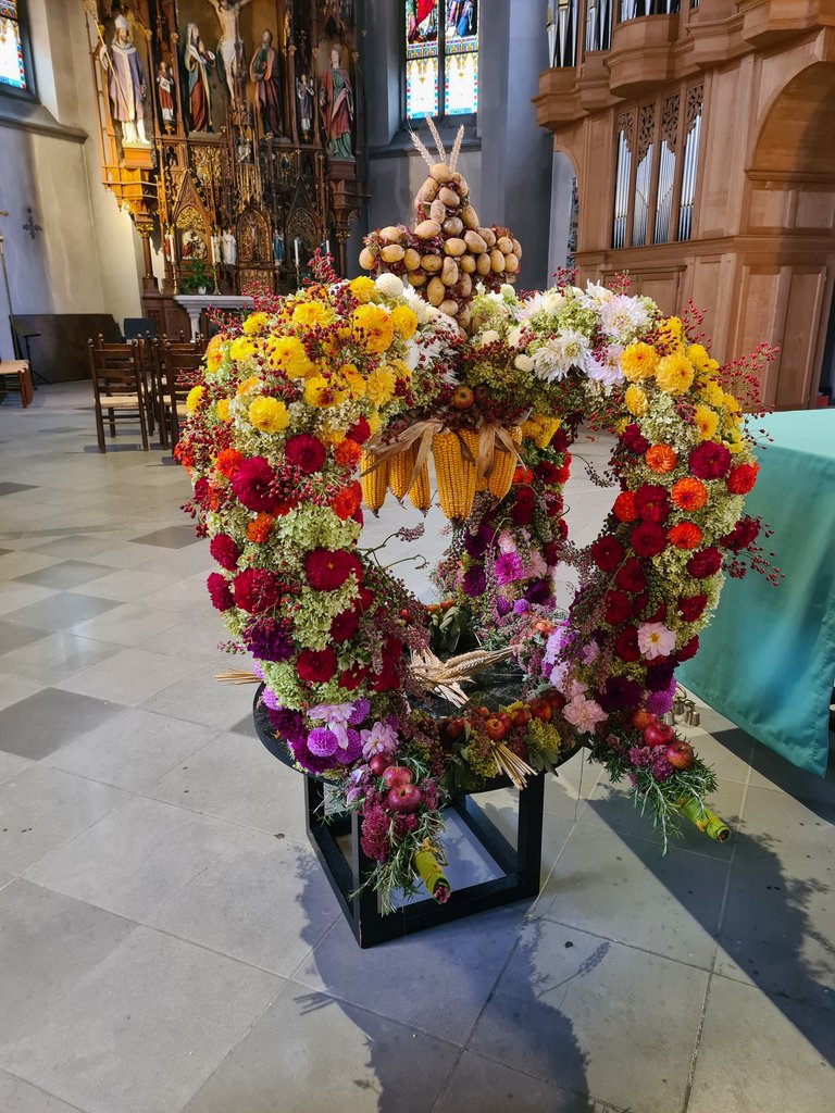 Im Inneren der Kirche schuf die von Agathe geleitete Gruppe eine stimmungsvolle herbstliche Erntedekoration.