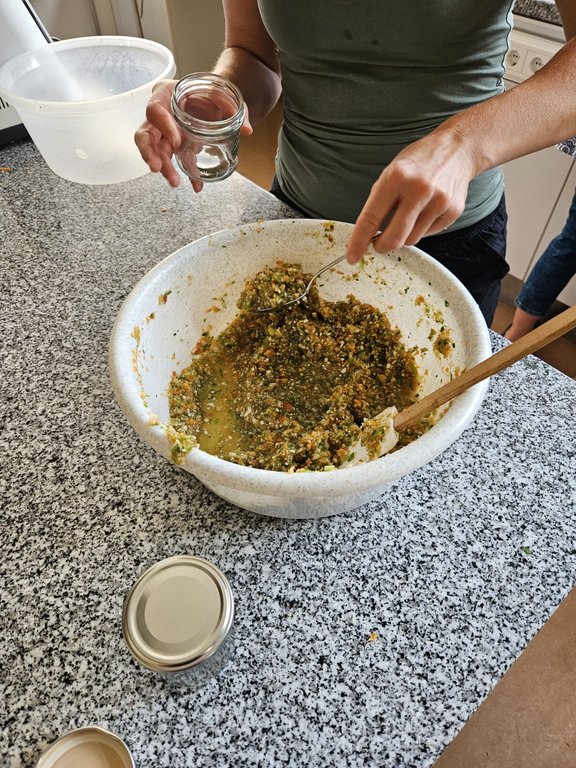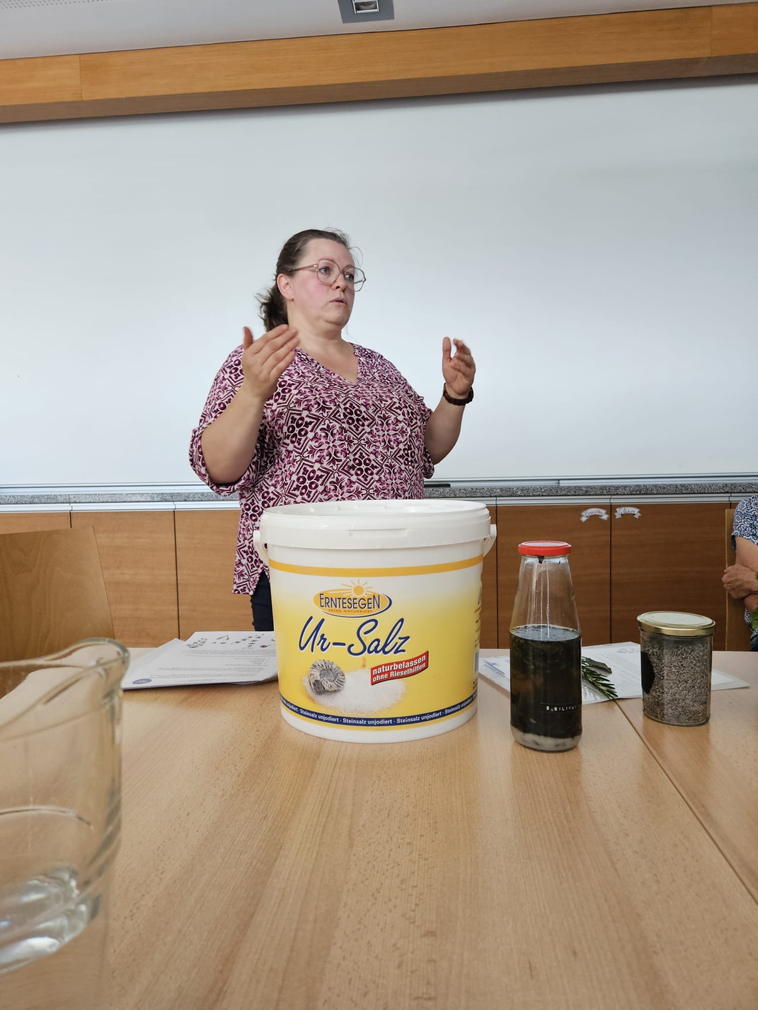 Bei der Veranstaltung konnten die Teilnehmenden unter fachkundiger Anleitung von Iris Lins eigene Kräutersalze herstellen. Dabei wurden verschiedene Kräuter wie Petersilie, Schnittlauch, Thymian und andere frische Gewächse verwendet, um aromatische Salzkompositionen zu kreieren. Außerdem wurde die Herstellung von Solen – einer natürlichen Salzlösung, die vielseitig in der Küche oder für medizinische Zwecke eingesetzt werden kann – vorgestellt.