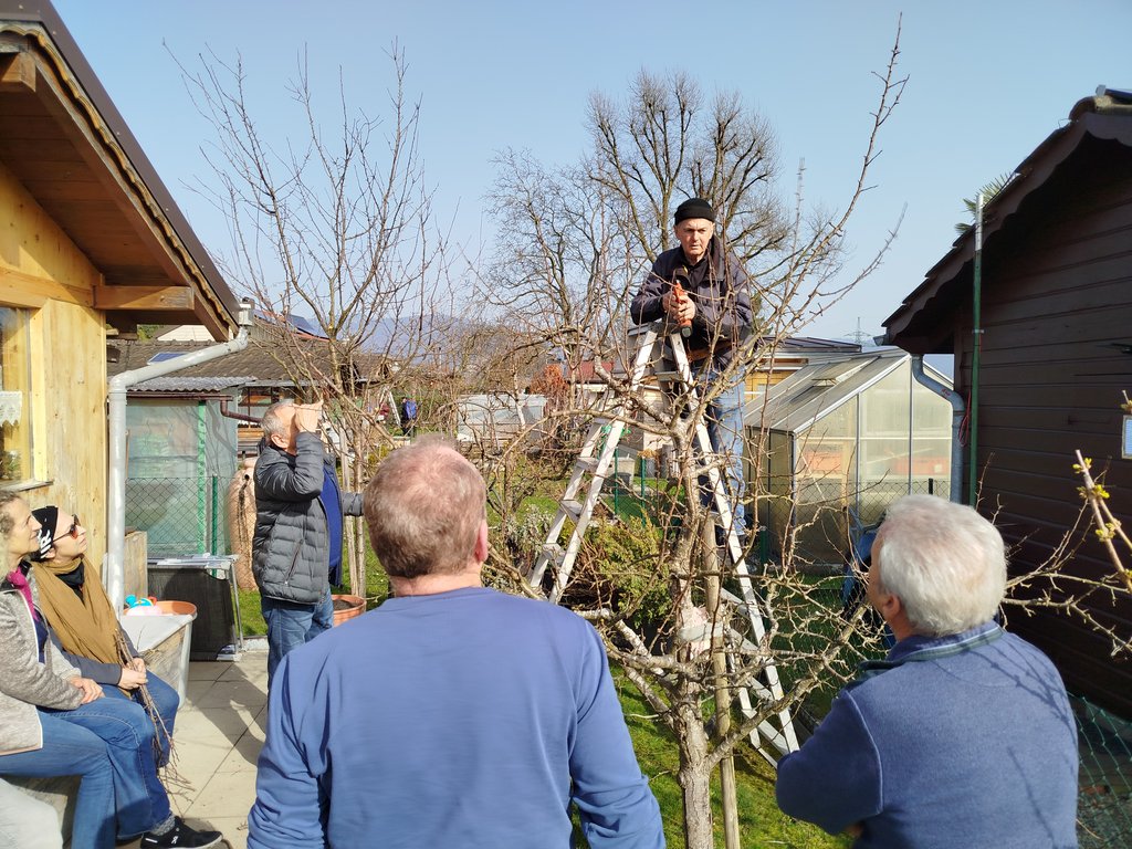 Bei strahlendem Sonnenschein und frühlingshaften Temperaturen besuchten rund 30 Interessierte den diesjährigen Winterschnittkurs des OGV Hard in den Schrebergärten Lerchenau.