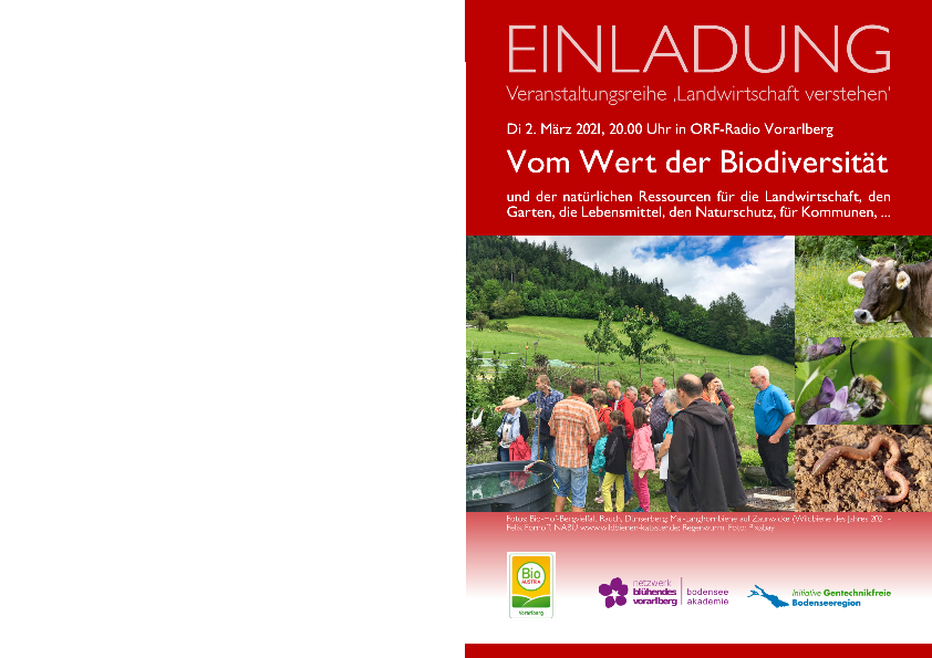 Vom Wert der Biodiversität und der natürlichen Ressourcen für die Landwirtschaft, den Garten, die Lebensmittel, den Naturschutz, für Kommunen,...