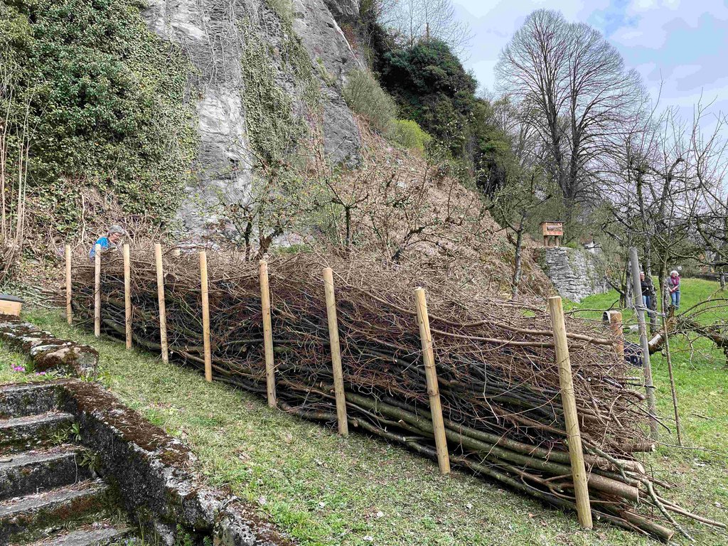 Ich habe mich am NA gleich dran gemacht, und im Weingarten meines Sohnes mit Schnittgut der Obstbäume und Reben eine Benjeshecke zu bauen. Sie ist 7m lang geworden!! Und ca. 1m hoch. Bin gespannt, wer sie als erstes besiedelt.