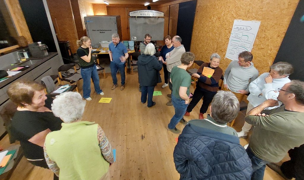 Beim Workshop unter dem Motto „Auftreten, Anleiten, Ankommen – Wie unser Gehirn Kommunikation steuert“ trafen sich Funktionäre der Obst- und Gartenbauvereine im Schopf des OGV-Wolfurt.