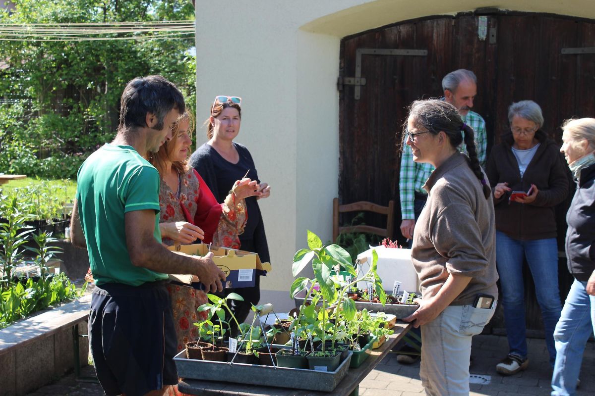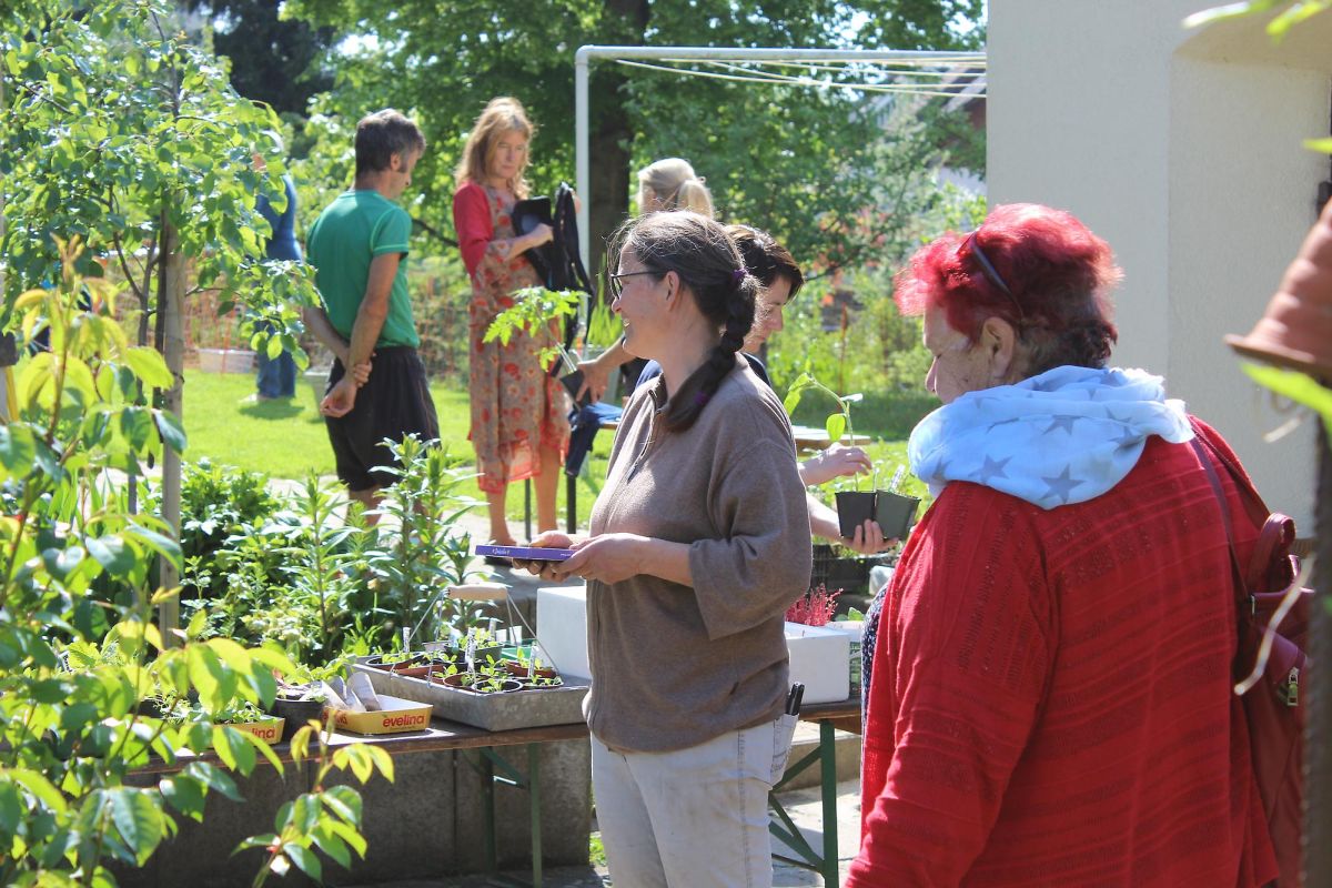 Bei schönem Wetter trafen ab 16:00 überraschend viele Personen beim Pflanzen tauschen ein.