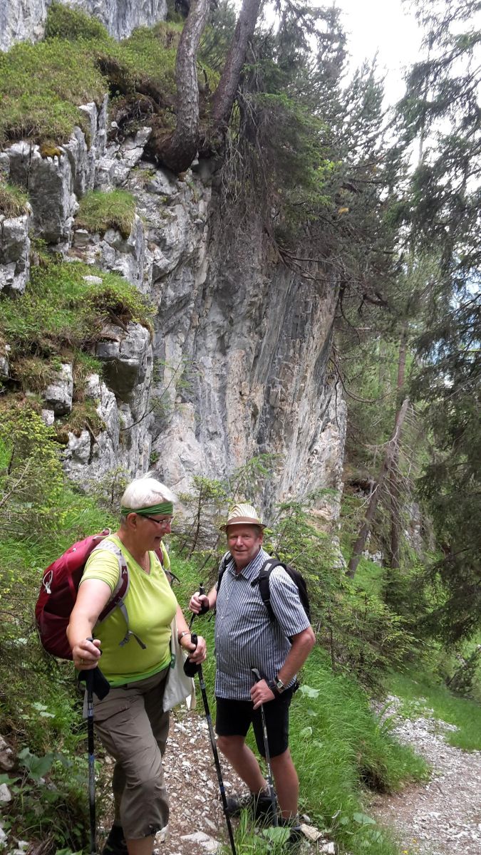 Nach ca. 5 min waren wir am Eingang der Schnanner Klamm und wanderten dann den steilen Weg zur Fritzhütte hoch. Schöne Ausblicke und eine tolle Flora belohnten unsere Mühen. 2 Stunden später erreichten wir die Hütte. Dort wurden wir mit bester Küche belohnt. Der Abstieg war ebenfalls steil durch den Wald und man konnte immer wieder ins weite Tal sehen. Beim Besuch der wahrscheinlich kleinsten Gärtnerei Österreichs gab es eine Führung durch Danielas schöne Kräuterwelt. Wir wurden mit Kaffe und Kuchen bewirtet.